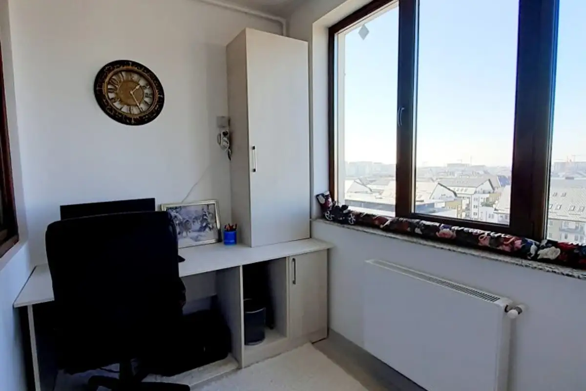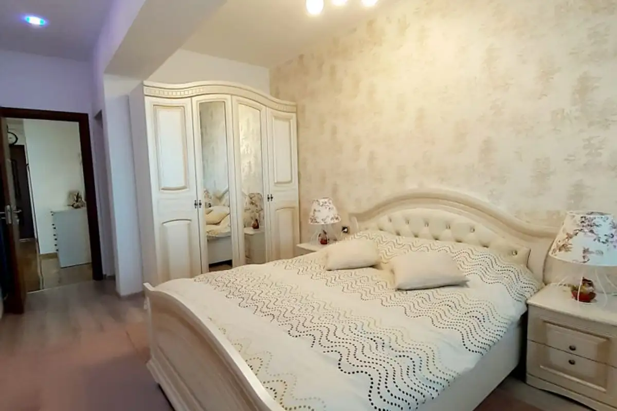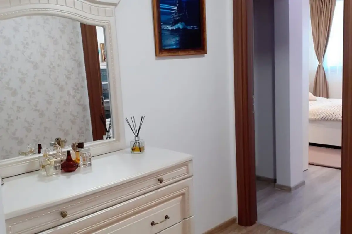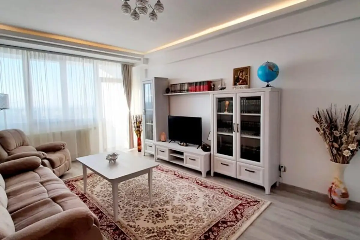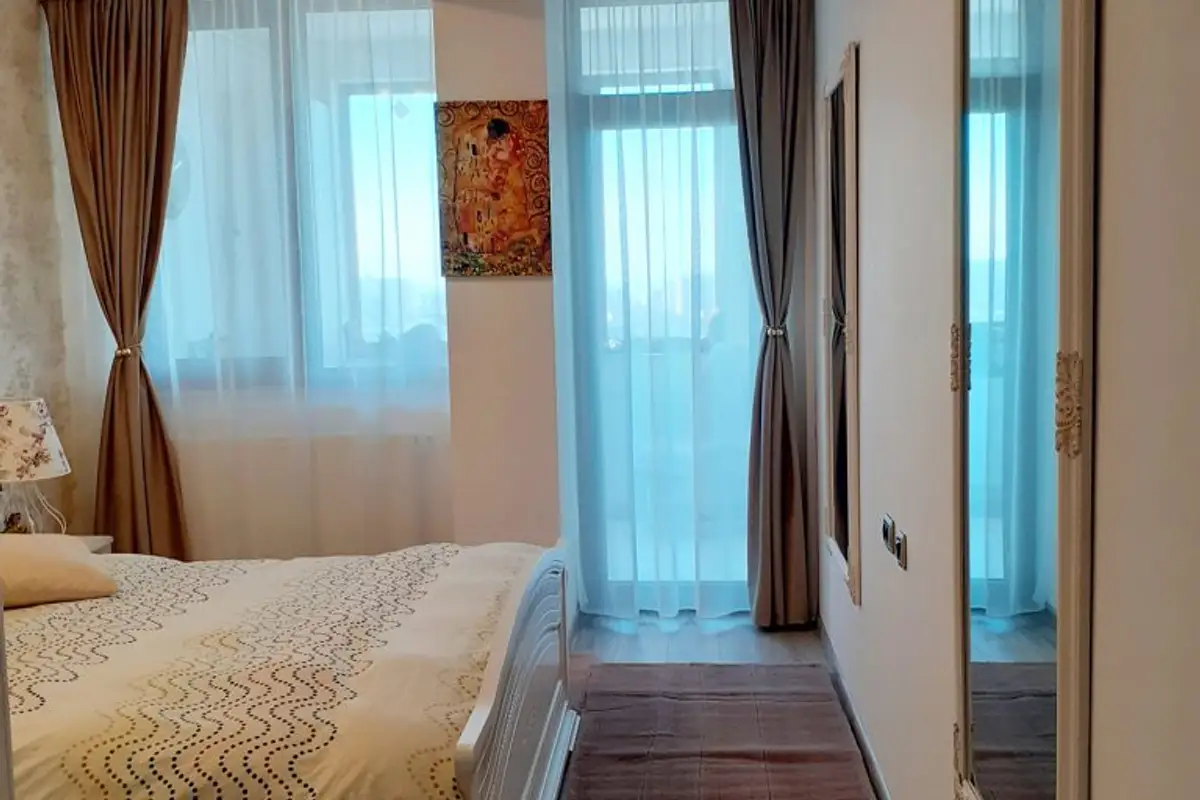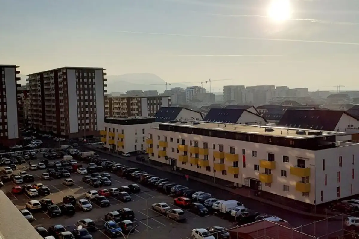 Located in the Coresi neighborhood in the north of Brasov (a new neighborhood currently under development), the 75 square meter apartment features a spacious living room, a master bedroom with a separate dressing room, a large kitchen, a distribution hallway, a bathroom, a loggia transformed into an office and a charming terrace overlooking the mountains.