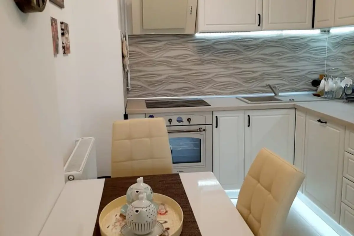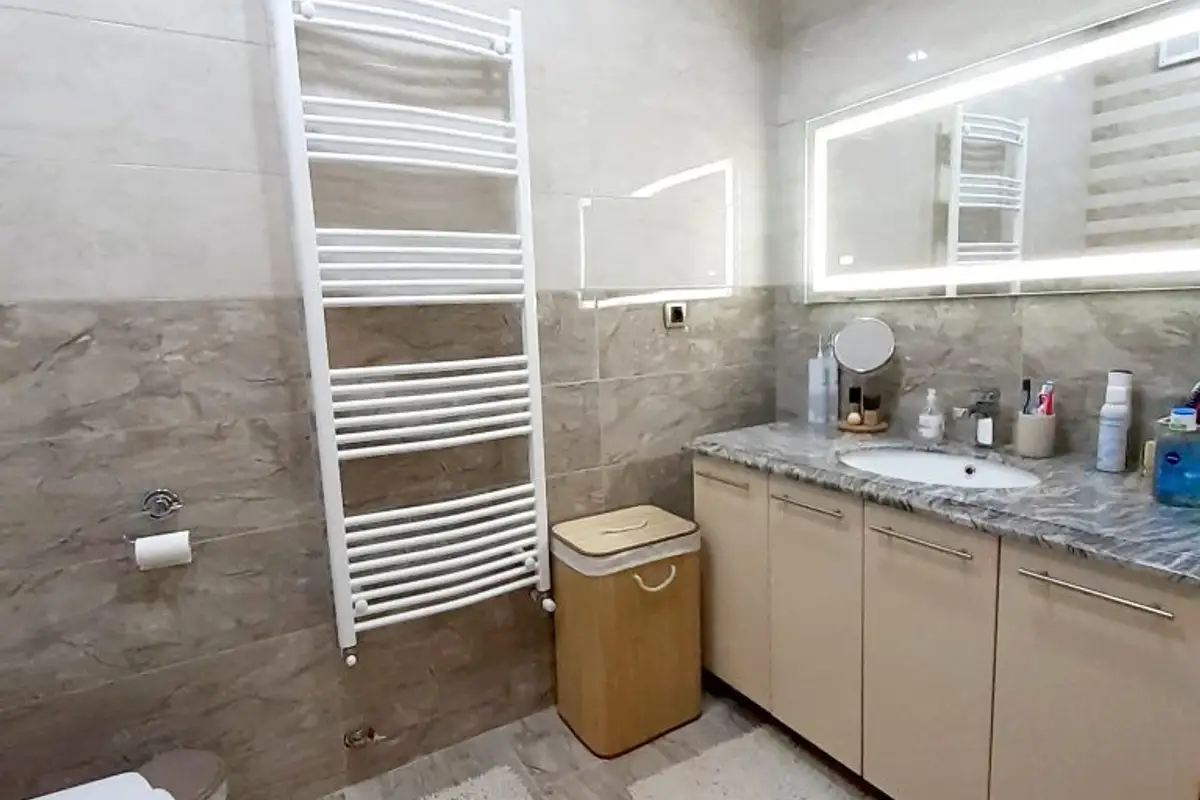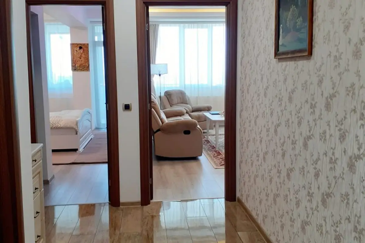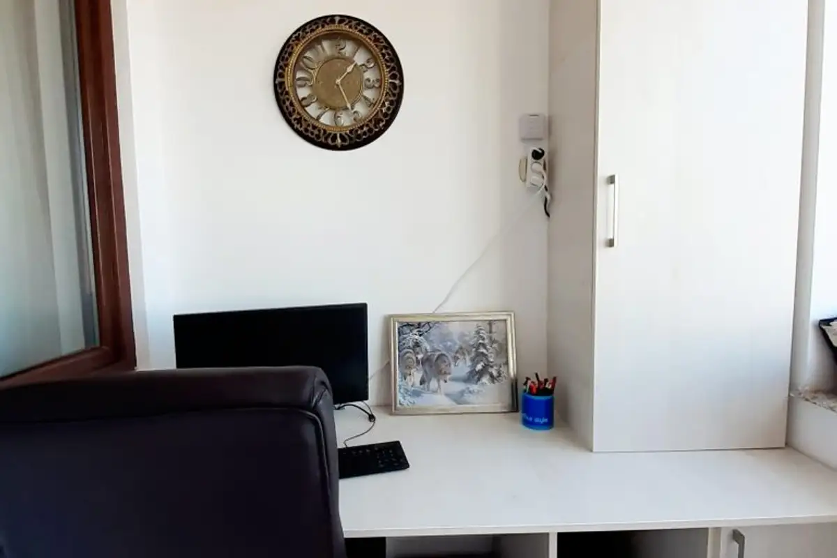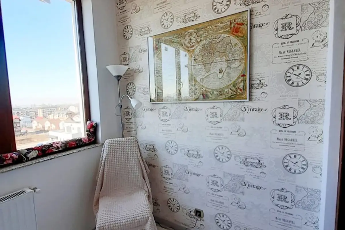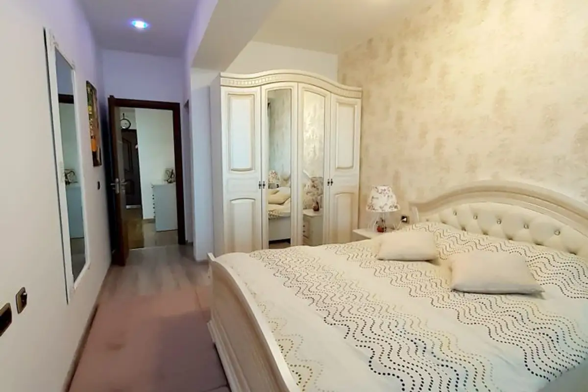 Located in the Coresi neighborhood in the north of Brasov (a new neighborhood currently under development), the 75 square meter apartment features a spacious living room, a master bedroom with a separate dressing room, a large kitchen, a distribution hallway, a bathroom, a loggia transformed into an office and a charming terrace overlooking the mountains.