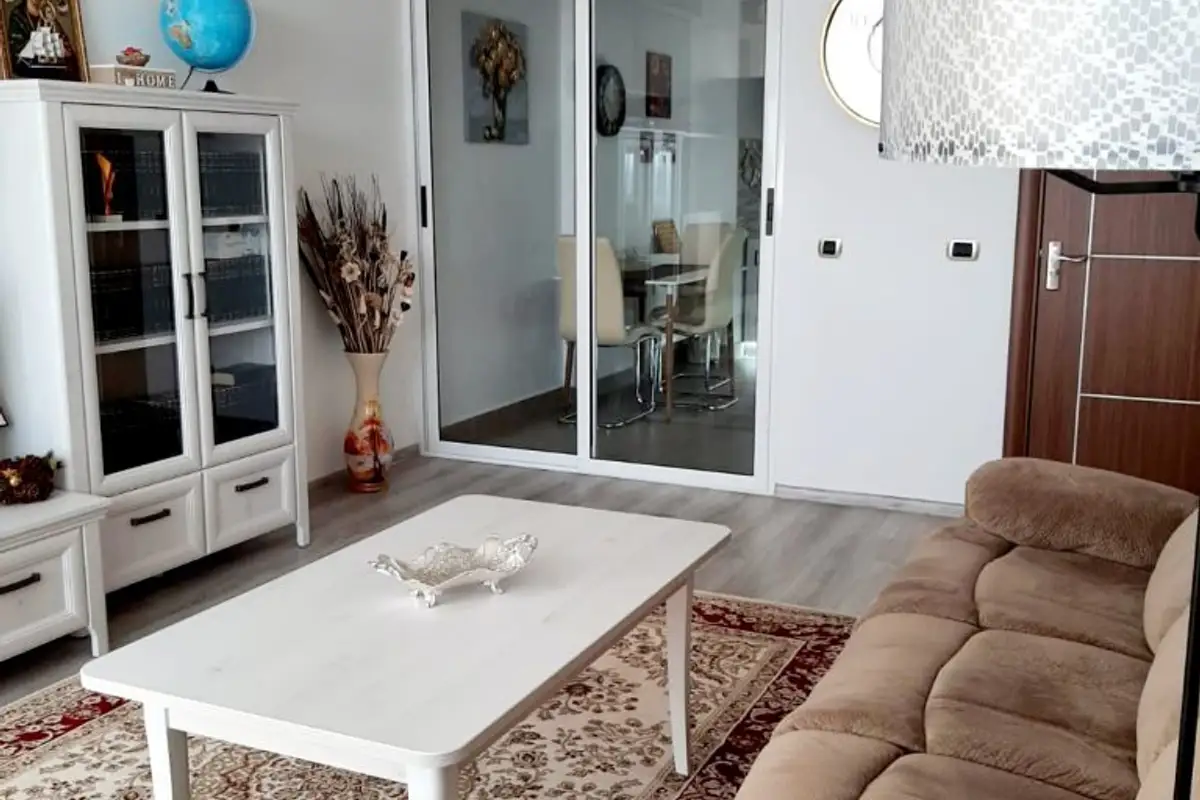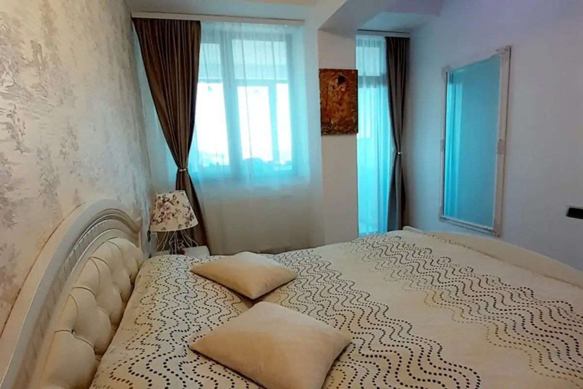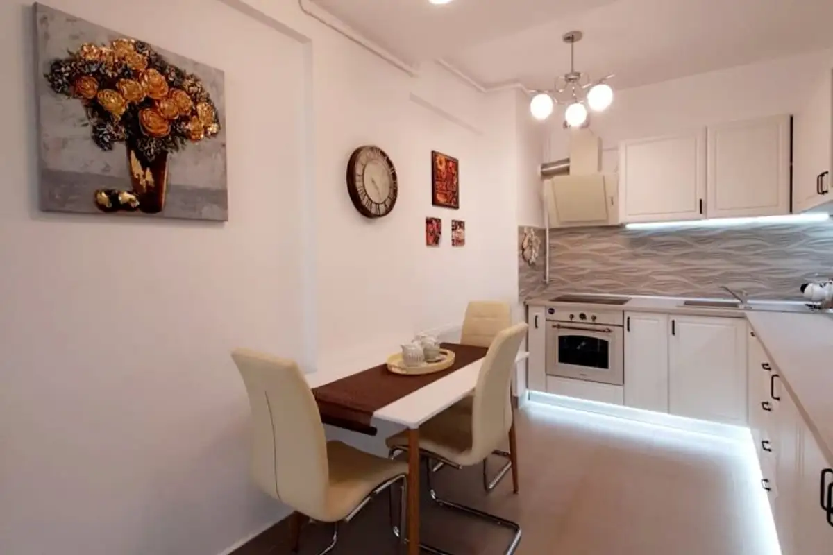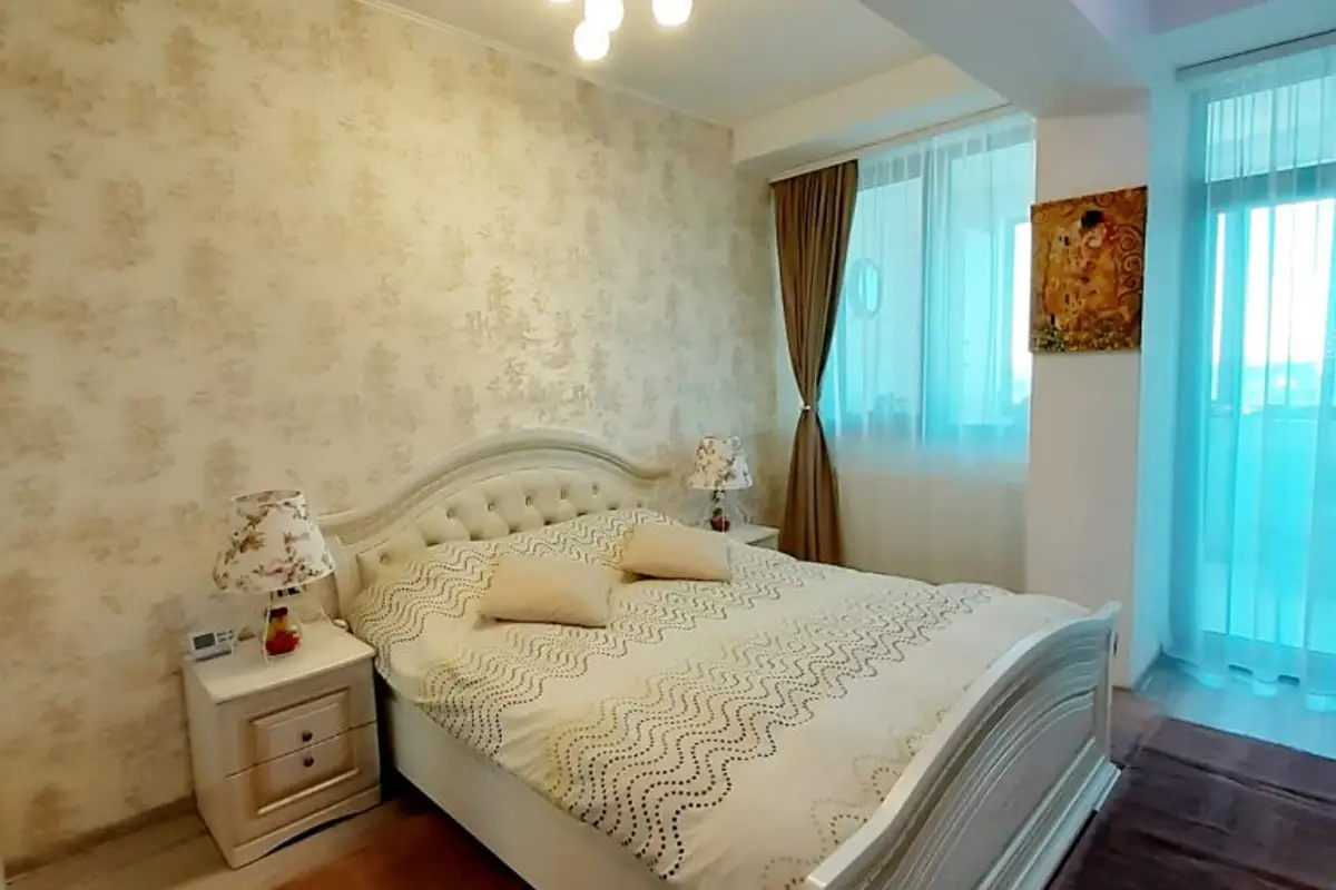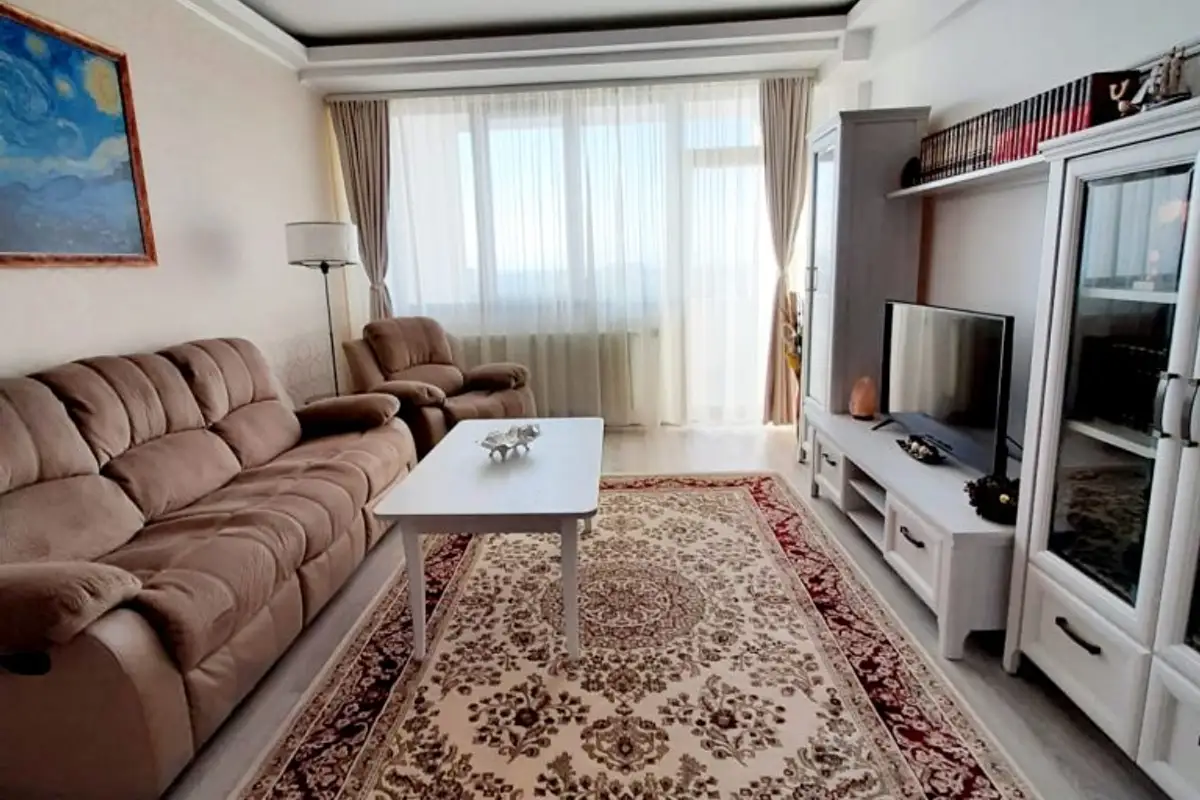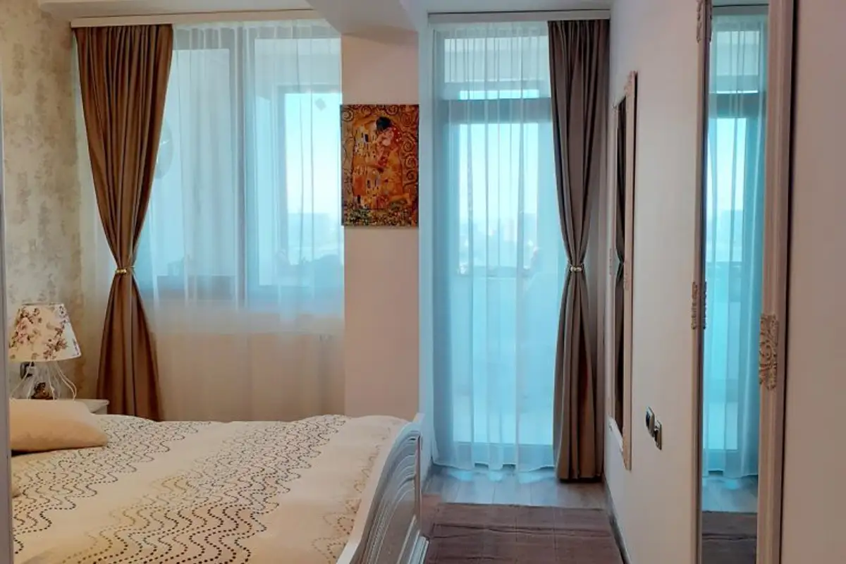 Located in the Coresi neighborhood in the north of Brasov (a new neighborhood currently under development), the 75 square meter apartment features a spacious living room, a master bedroom with a separate dressing room, a large kitchen, a distribution hallway, a bathroom, a loggia transformed into an office and a charming terrace overlooking the mountains.