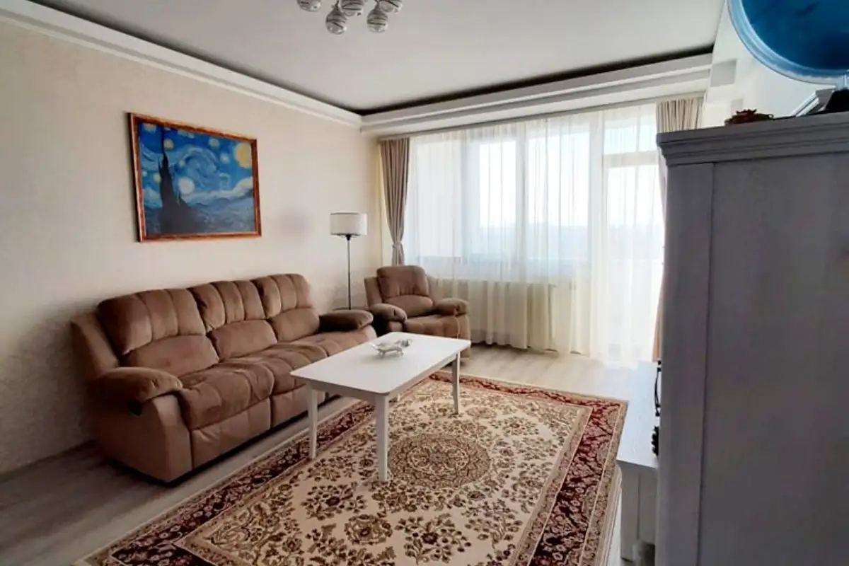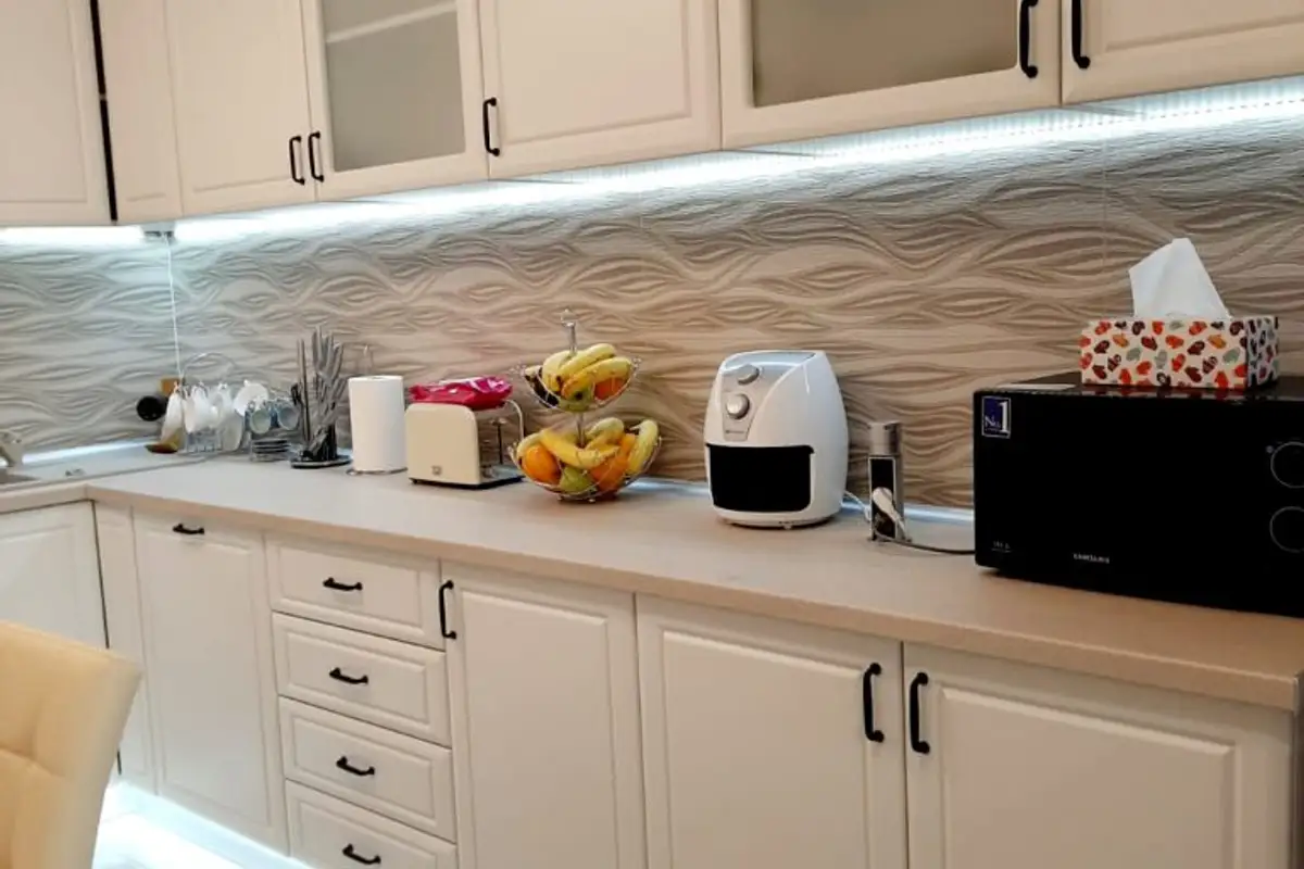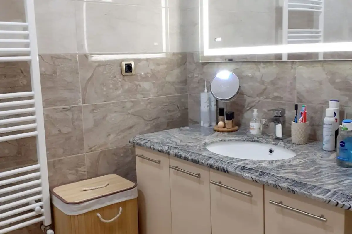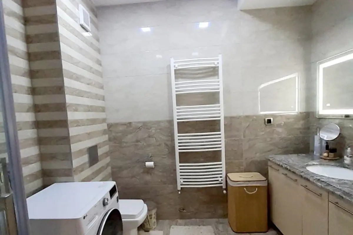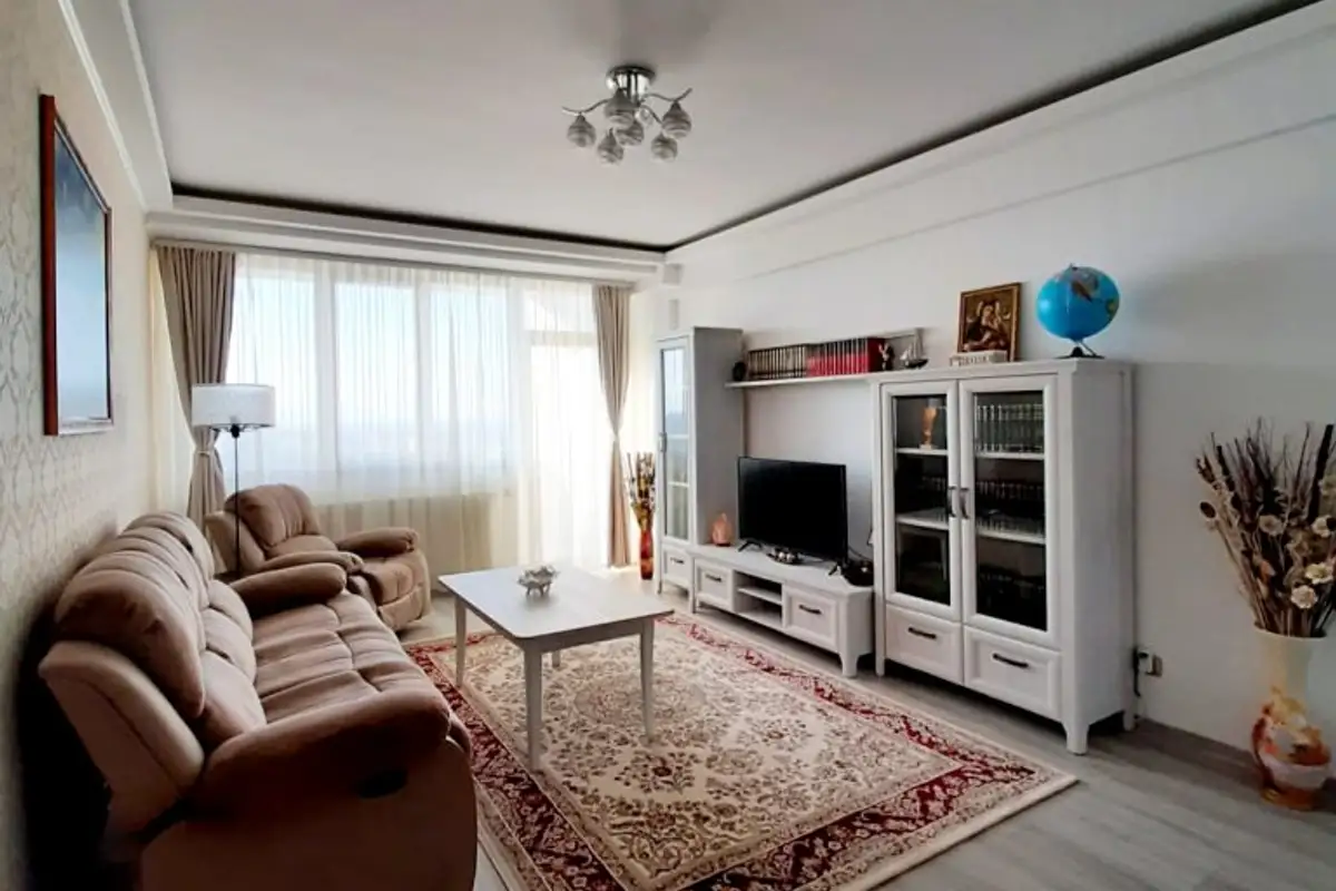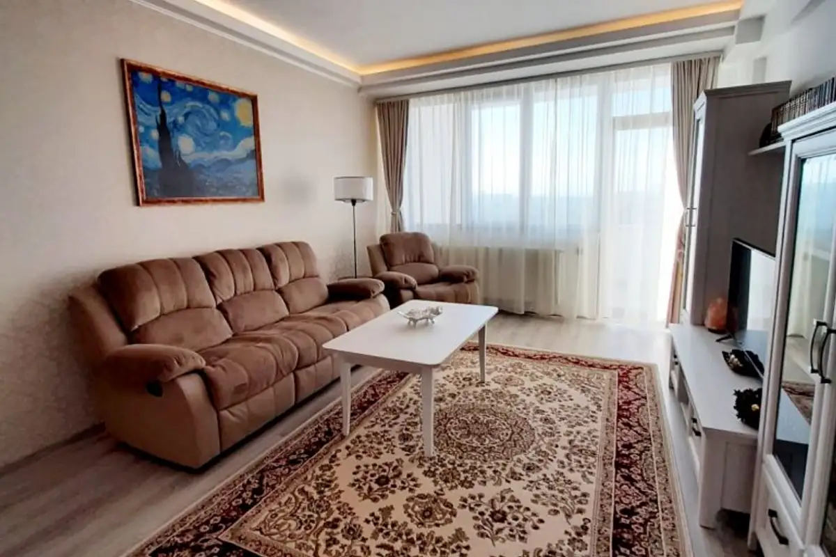 Located in the Coresi neighborhood in the north of Brasov (a new neighborhood currently under development), the 75 square meter apartment features a spacious living room, a master bedroom with a separate dressing room, a large kitchen, a distribution hallway, a bathroom, a loggia transformed into an office and a charming terrace overlooking the mountains.