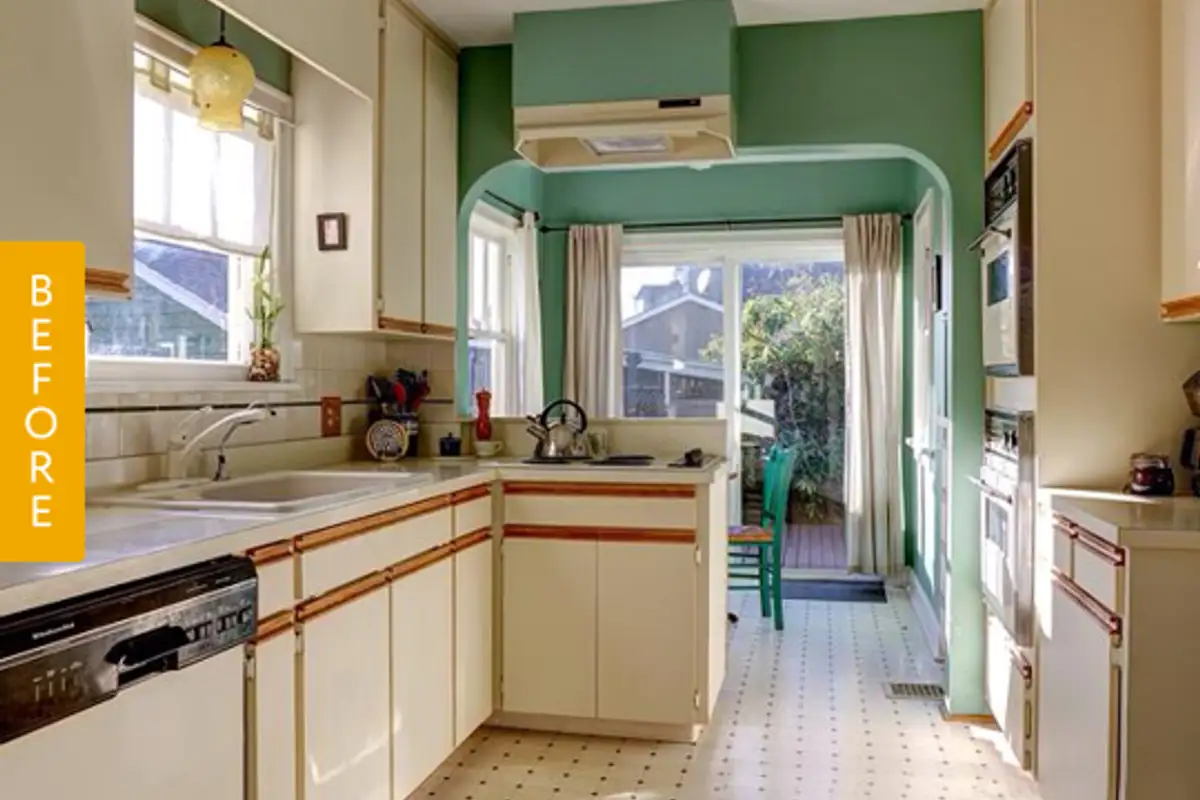 In place of the old cabinets, shelves made from recycled wood appeared; countertops were also made from the same material. The cabinets were procured from a local store, thus outlining the rustic style that the couple wanted to illustrate in their kitchen design.