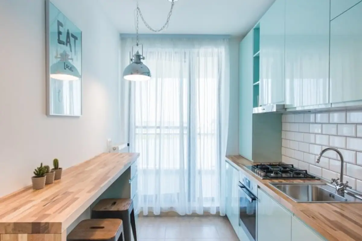 That's why we say that in small spaces, adaptation is the key word. If classic options are excluded, then it's time to look for alternative solutions such as a bar-type table arranged in continuation with the cabinets or a simple countertop mounted by the window.
