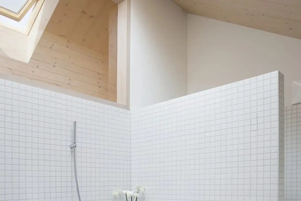 Being on the top floor reserves the privilege of offering that wonderful feeling of having the world at your feet or touching the clouds. Although the sloping roof construction characterizes the building, the overall atmosphere is not one of constraint. On the contrary, it is dominated by brightness and a lot of white.