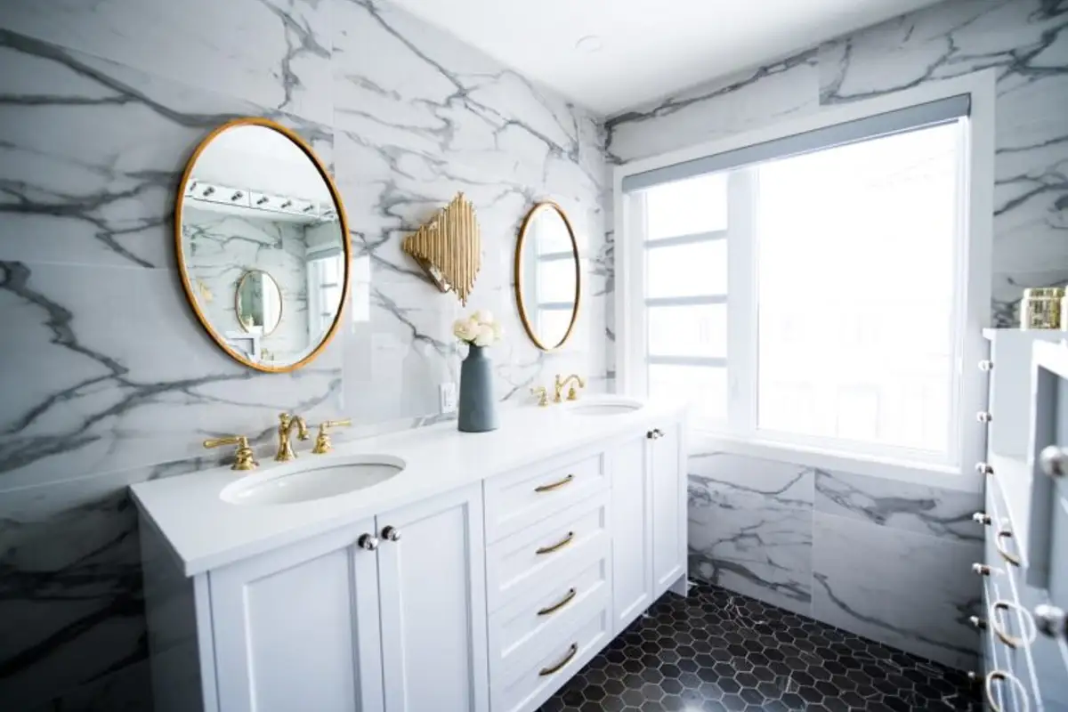 Choose a small bathtub, a shower cabin with sliding doors, or even a combination of the two. Suspended toilet models can save space and create an elegant look. Also, invest in economical faucets and showers to reduce water consumption.