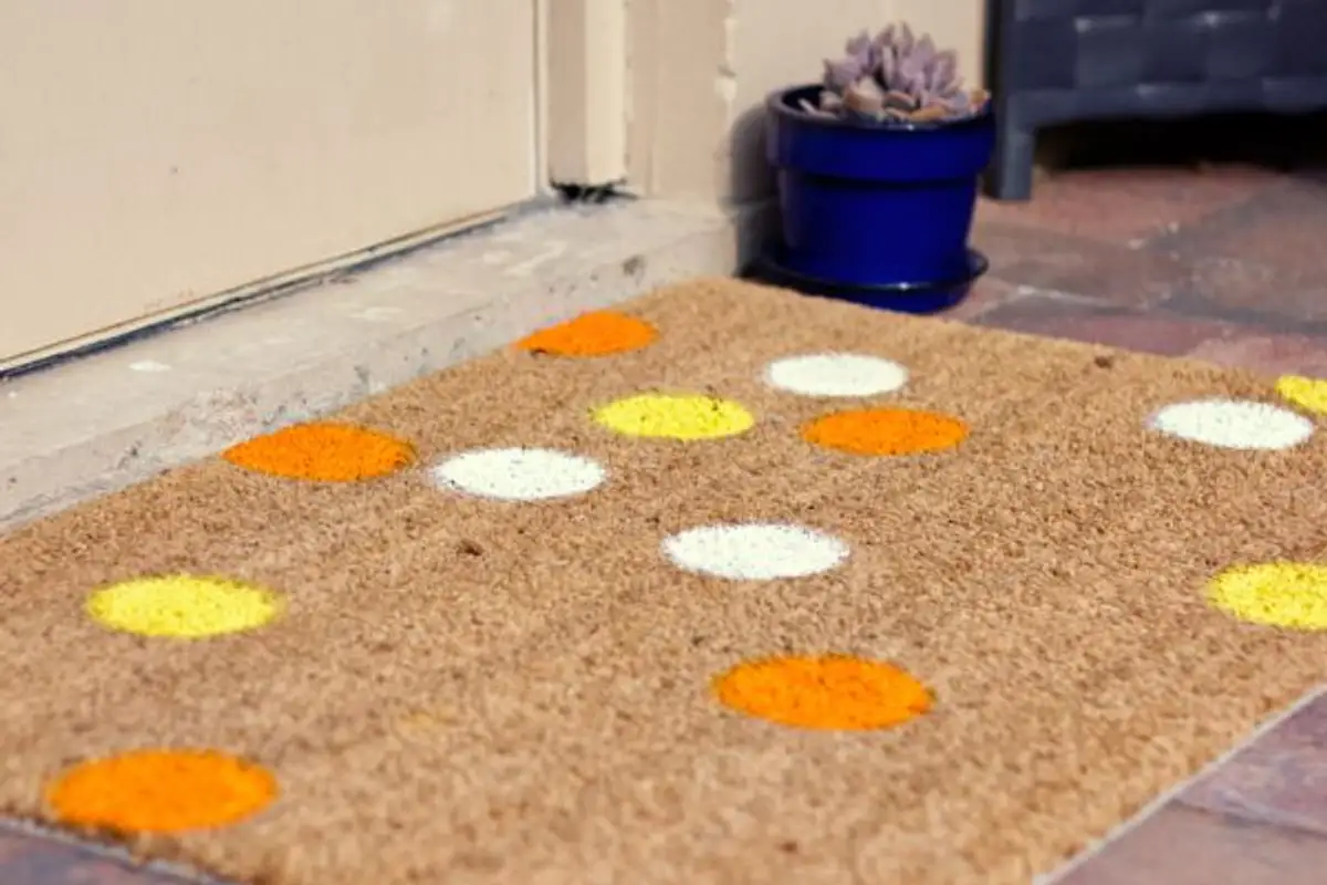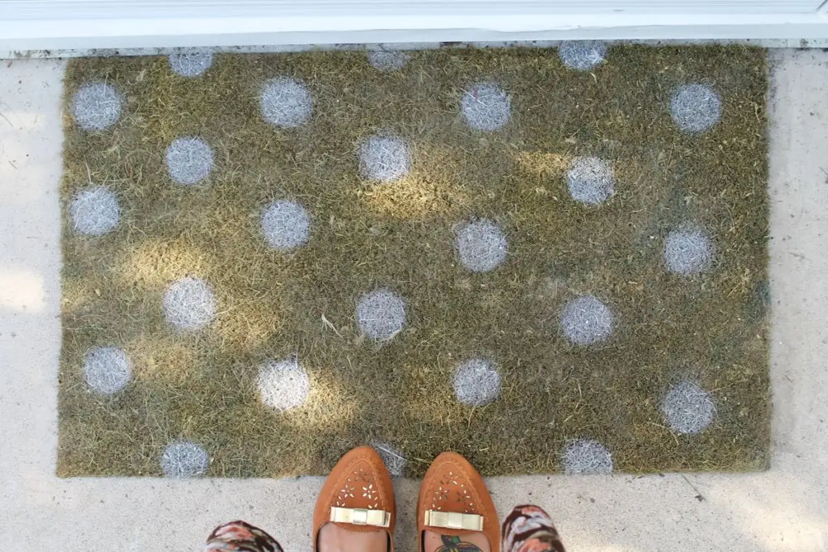 Give your colorful dot rug a whole new look with a graffiti spray paint in white, yellow, orange or any other color that inspires you.