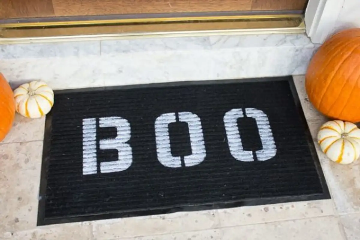 Funny messages are an excellent idea: create a Halloween atmosphere and go with the idea of "scaring" your guests with a "B AU" drawn on the rug. Surely, everyone who comes to you will laugh heartily even before you open the door.