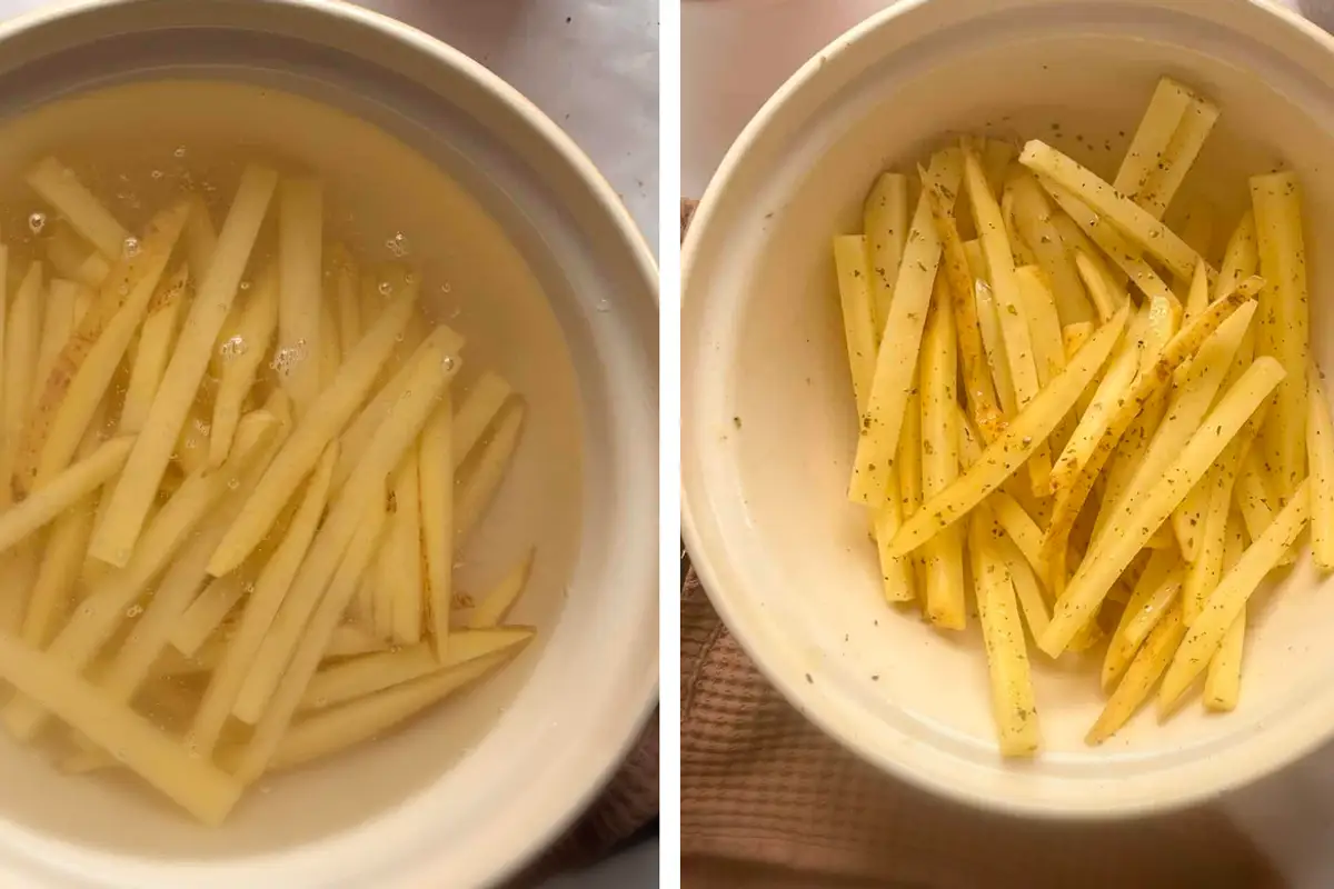 Potatoes: Any large potatoes suitable for baking can be used. Yellow potatoes with a waxy texture are a very good choice. It is essential that the potato slices are soaked before cooking to remove excess starch, thus obtaining a very crispy texture.