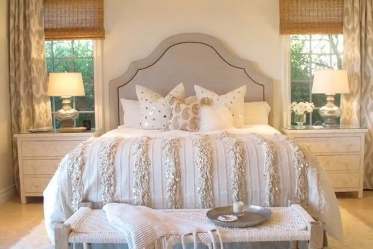 Pillows should be plentiful, especially in the bedroom, as they will create that organized clutter that evokes affluence. We can't imagine a royal bed without those linens with different textures and many rows of fluffy pillows.