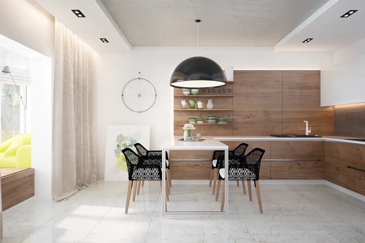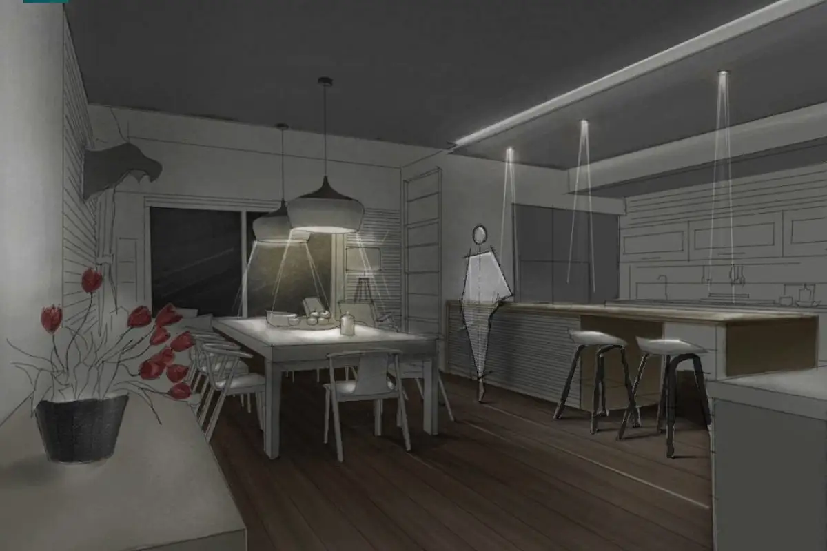 Direct lighting is recommended for areas where a specific level of light is needed. For example, in the dining area, the light level should be sufficient to see objects in depth, perceive texture, colors and shape correctly, as well as to see people seated at the table and engage in pleasant conversations.