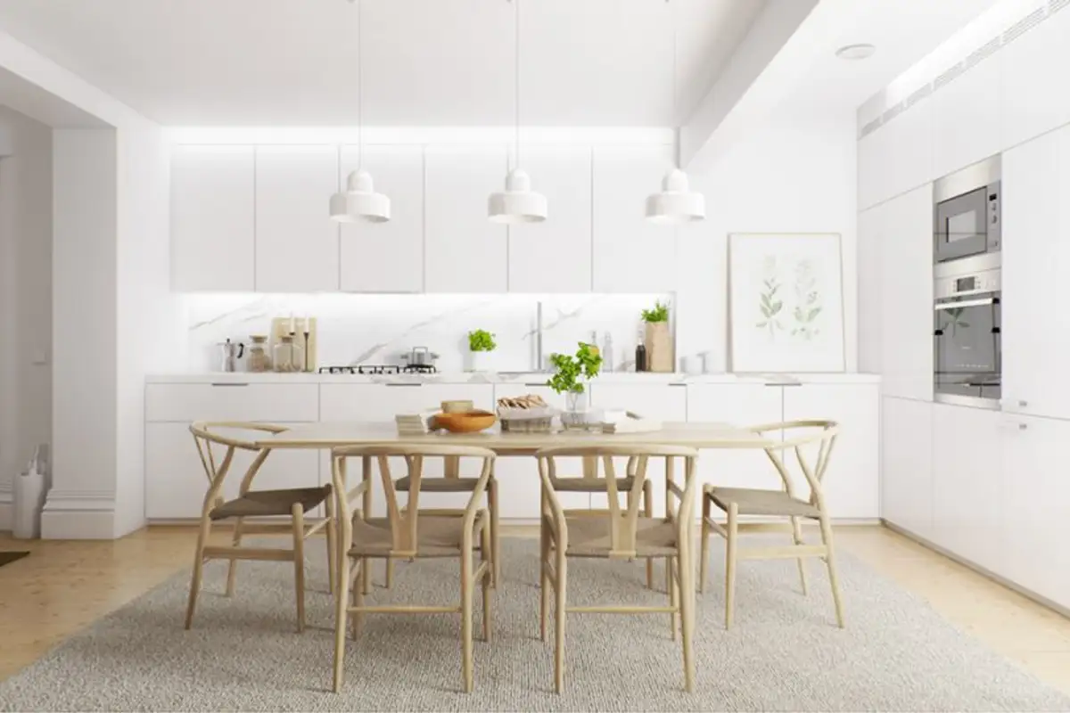 Accent areas can be achieved with lampshades in a corner next to an armchair to define the reading spot or pendant lights above a dining table.