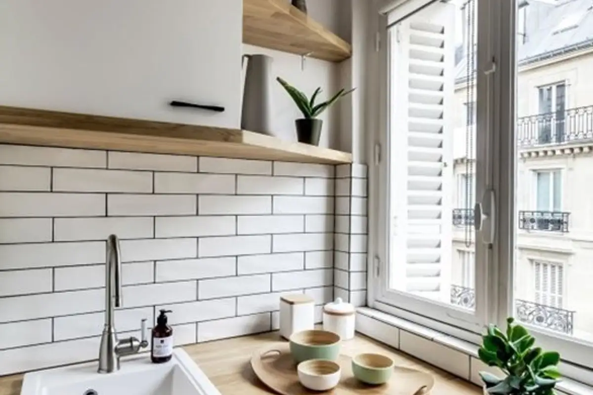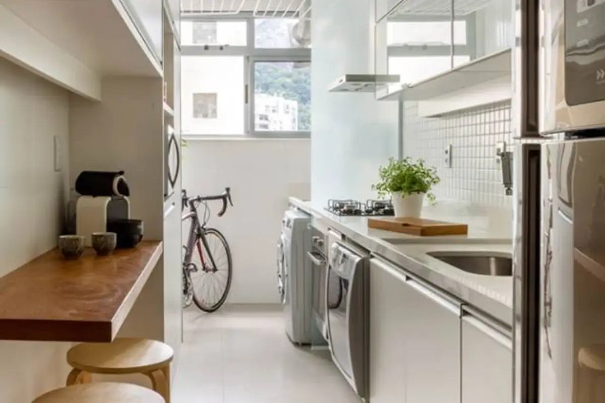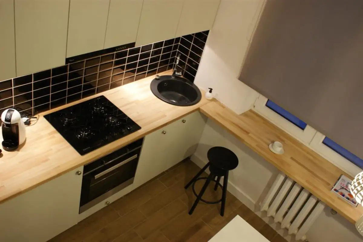 Take advantage of every square meter, every corner that you could use for a useful purpose! Corner shelves or racks, a wooden countertop with sufficient thickness to integrate drawers, furniture arranged around the window, a folding table, here are just a few ideas worth exploring.