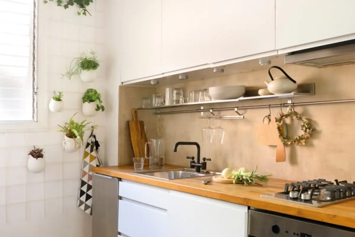 Although unconventional and viewed with reluctance, open storage instead of massive cabinets that take up space can be a solution worth considering. Again, the selection of necessary objects and maintaining order are an important factor in this case. Explore what suits you, choose according to your needs and go for solutions that work for you.