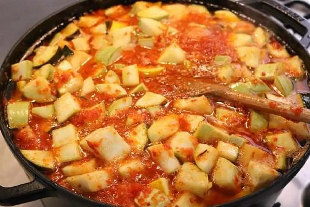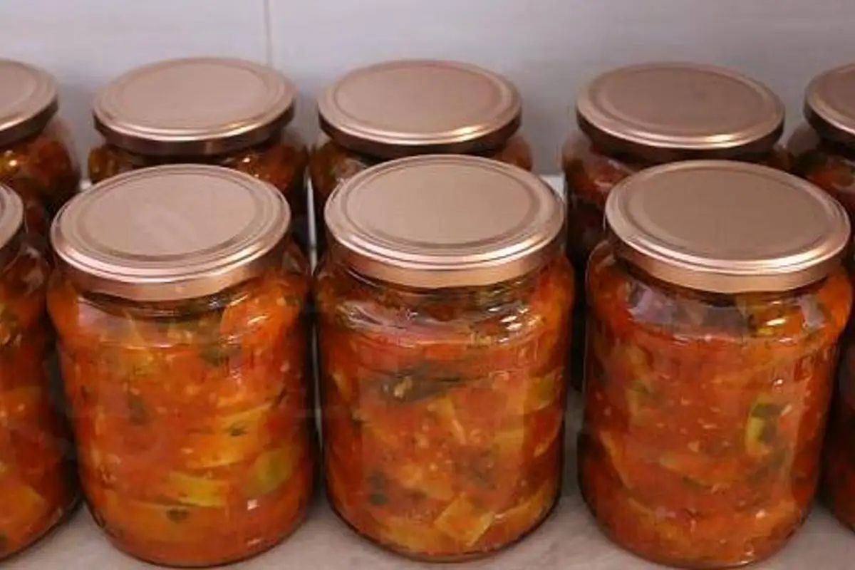A jarred salad with crunchy zucchini and a rich pepper and garlic sauce. It's a simple recipe inspired by Moldovan cuisine, very aromatic and versatile – ideal served cold as a side dish or appetizer, and it keeps very well in the pantry.