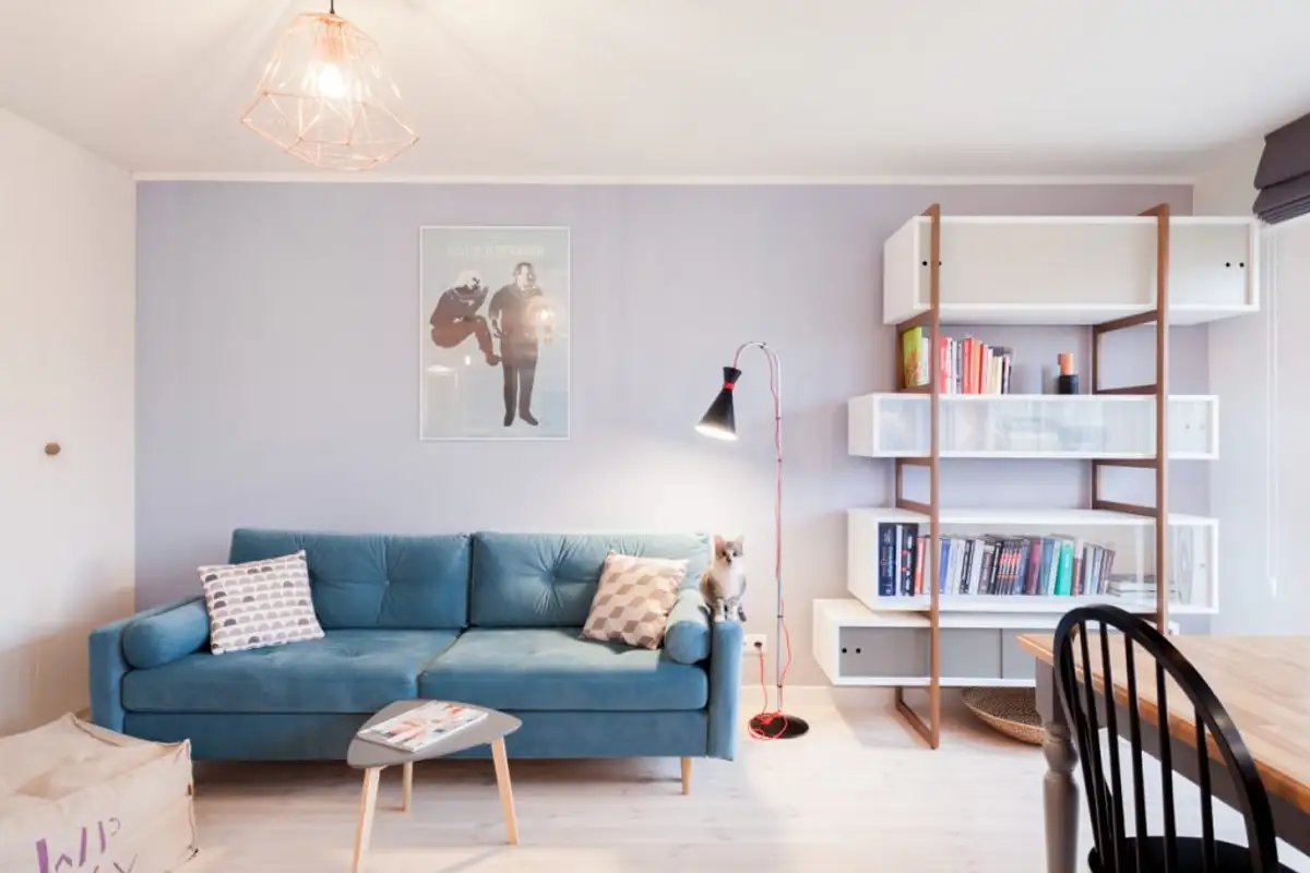 The 42 square meter area is divided into two rooms, with a living area and bedroom. Since the rooms are limited in size, the young woman sought the help of the designer to guide her towards the right arrangement for her needs. As her budget was limited, the space was furnished with only the essentials.