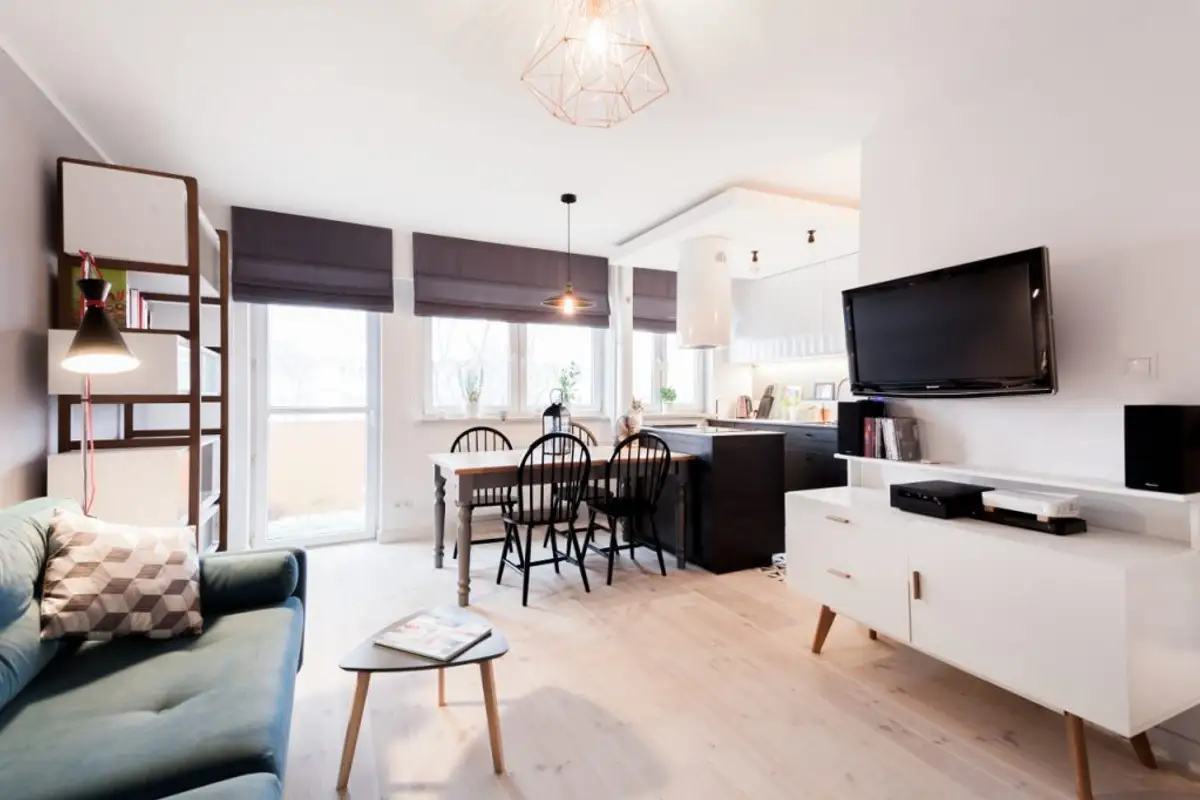 For this apartment renovation, the team from Boho Studio from Poland received a few clear instructions from the young beneficiary: an open space kitchen with an island, a modern and functional design with color accents.