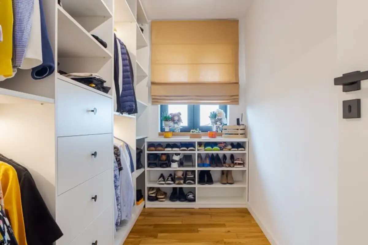 The total area, 156 sqm, is relatively evenly distributed: 86 sqm on the ground floor and 70 sqm on the first floor (where the night zone is located with three bedrooms, a spacious dressing room, and a bathroom).