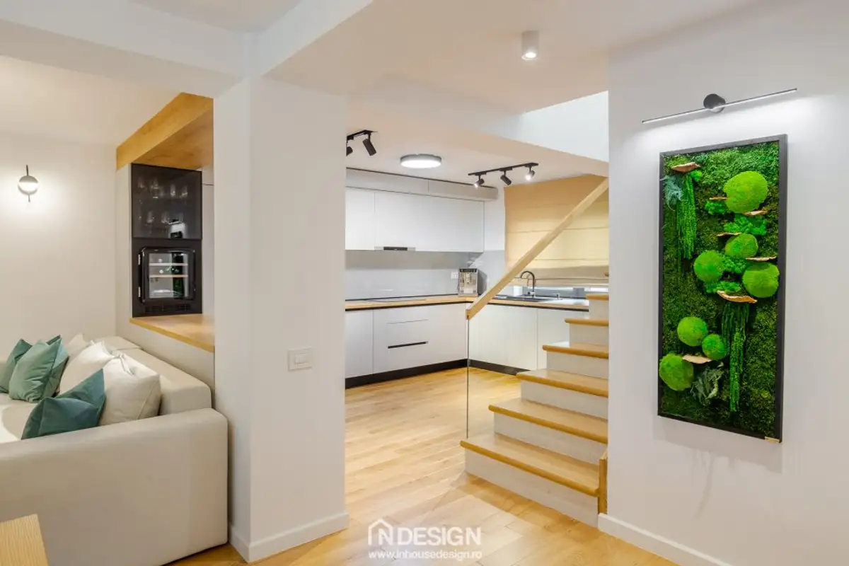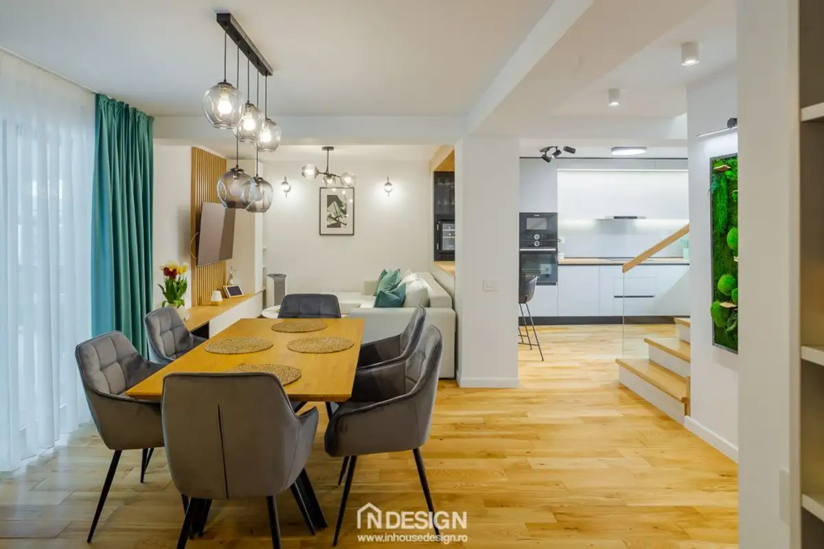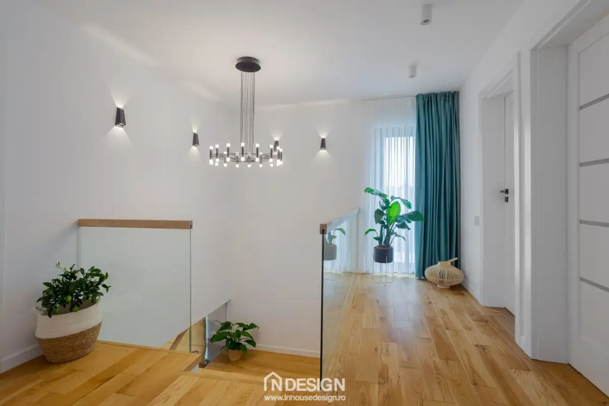 The relaxed, youthful atmosphere of this single-family home in Berceni, Ilfov welcomes you from the moment you step inside. The beneficiaries, a family with two young children, desired a contemporary design with Scandinavian style accents. The result is an intimate space with a focus on comfort.