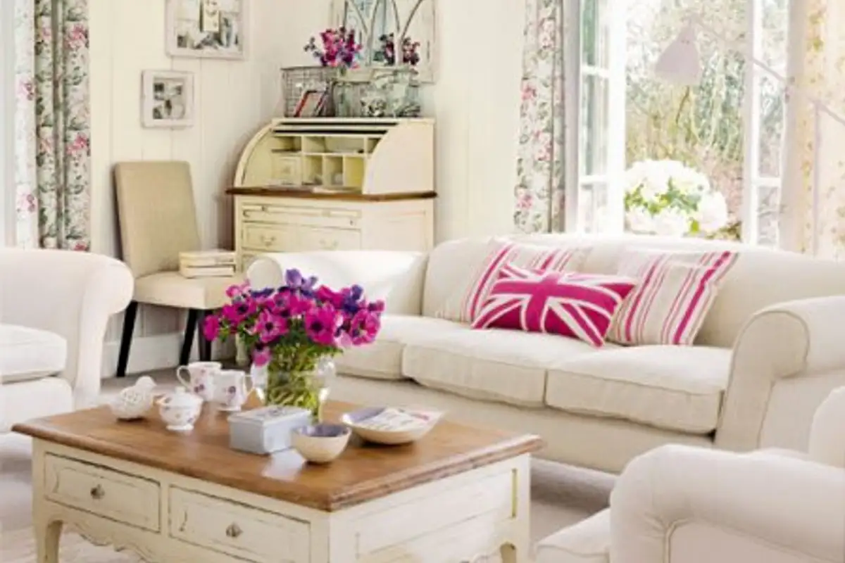 Here are some of the brands of this style: old objects or furniture with an aged look (you can find them in antique shops) which emanate a nostalgic, romantic air, pastels, antiqued finishes, reminiscent of the 1940s-1950s, refined but comfortable rooms, upholstery with floral patterns, lace, porcelain, old books.