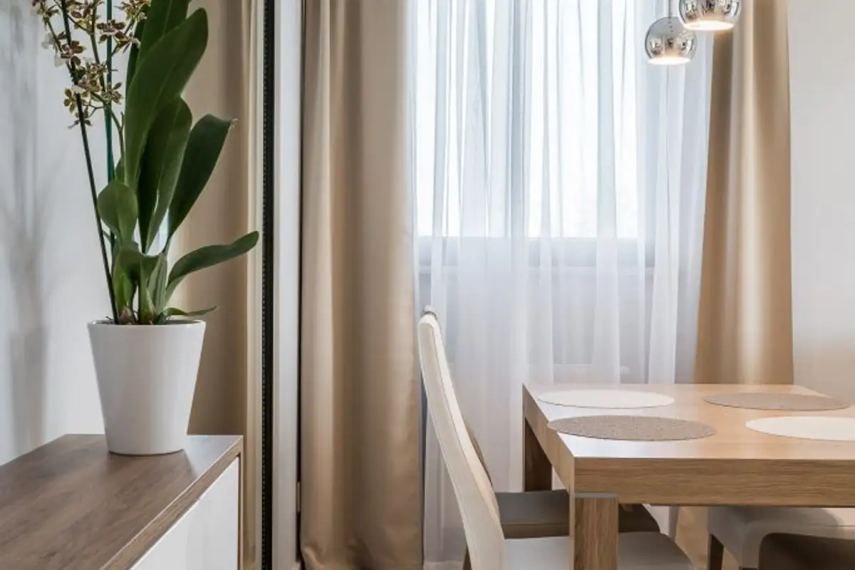 The immaculateness and naturalness of the entire arrangement are given not only by the extensive use of natural wood but also by the accessorizing with decorative plants, the perfect ingredient for visually refreshing the home.