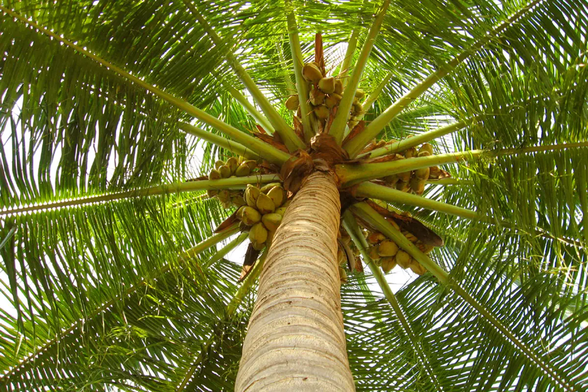 The coconut palm is an exotic tree from the tropical zone, belonging to the palm family, reaching heights of approximately 40-50 m and bearing coconuts, which we all love whenever we have the opportunity, whether raw or in pastries, refreshing drinks, or ice cream.