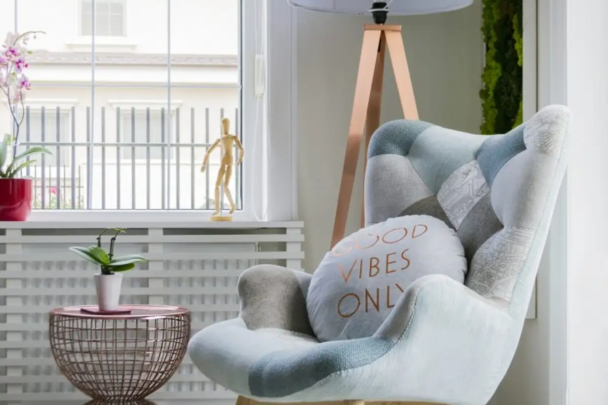 The windows were highlighted with decorative profiles, while at the same time giving up curtains or drapes. The space thus receives more natural light and a wonderful panorama of the garden outside. In this context, masking the unsightly appearance of the radiators became a necessity.