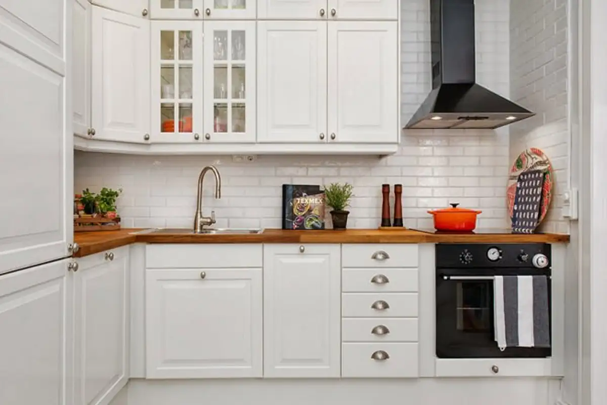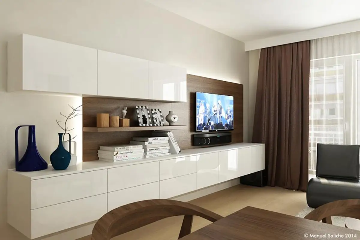 White loves wood. Any wooden element is highlighted ideally in a white space. All the texture changes of the wood, all the nuances of its essence, are much more visible in a white frame.
