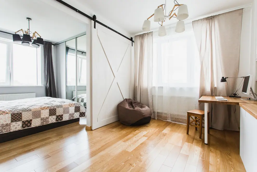 Eugenia si-a dorit mult o usa la dormitor asemanatoare cu cea a a fermelor englezesti, un detaliu pe care il viziona des pe paginile cu amenajari de pe Pinterest. O comanda din afara tarii ar fi presupus o suma mare de bani, asa ca au gasit un tamplar priceput care le-a realizat modelul. Nici transportul ei pana la etajul 11 al imobilului nu a fost o sarcina usoara.