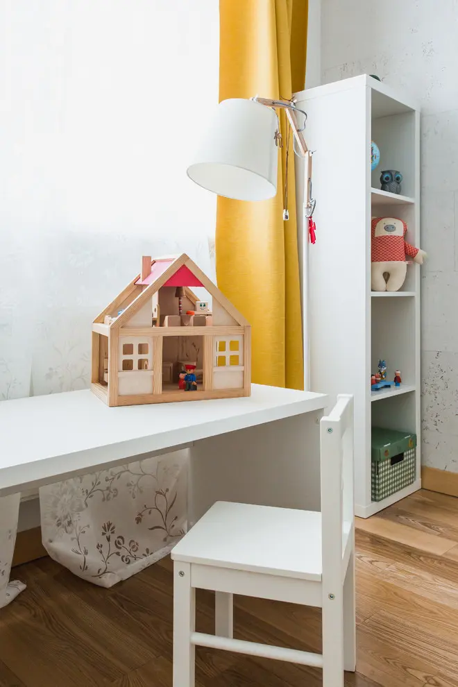Pentru camera fetitei au ales o mobilare sumara, cu piese care se pot modifica usor pe masura ce ea va creste. Usa verde este piesa de rezistenta a camerei, de altfel intreaga camera fiind bogata in culori si nuante vesele.