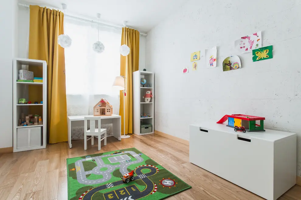 Pentru living s-au gandit la o abordare usor diferita. Au eliminat televizorul si configuratia clasica cu canapea, fotolii si masuta de cafea pentru a avea mai mult spatiu pentru joaca, dansat si orice alte activitati pe care le pot face impreuna cu fetita lor. Au optat insa pentru multe dulapuri si au gandit un mic spatiu de lucru pentru Ivan.