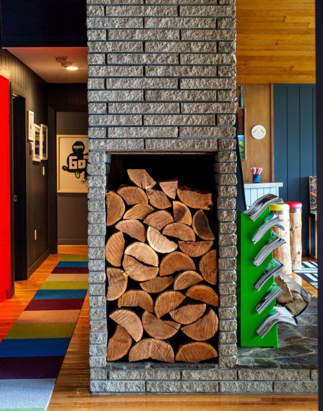 Spatiul care adaposteste lemnele chiar in interiorul livingului