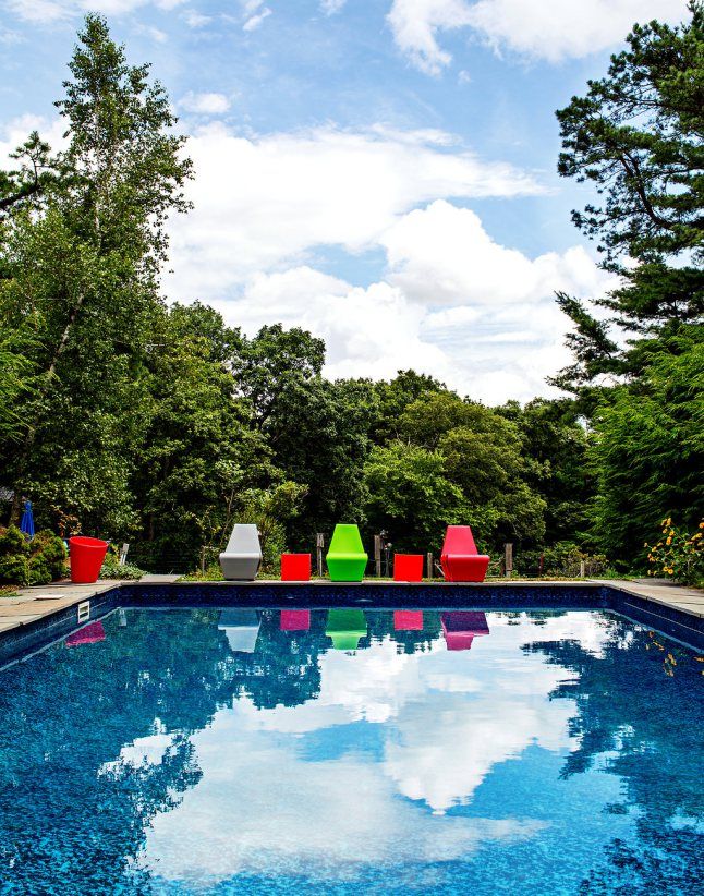 Culorile in combinatii dramatice, puternice, de impact sunt predominante. De la camera de zi, in bucatarie, dormitor si chiar la piscina, fiecare zona este dominata de o asociere care impacteaza. De la rosu, galben, negru, verde si violet, pot spune fara teama ca aproape intregul spectru al culorilor a fost folosit in aceasta amenajare. Nici piesele de mobilier nu sunt mai prejos.