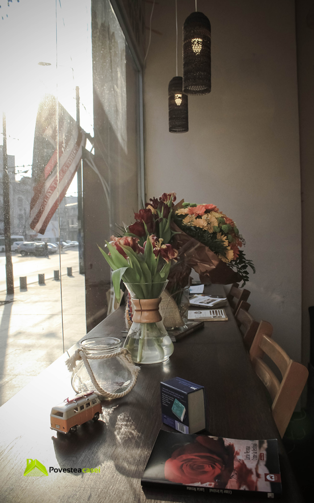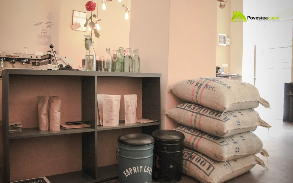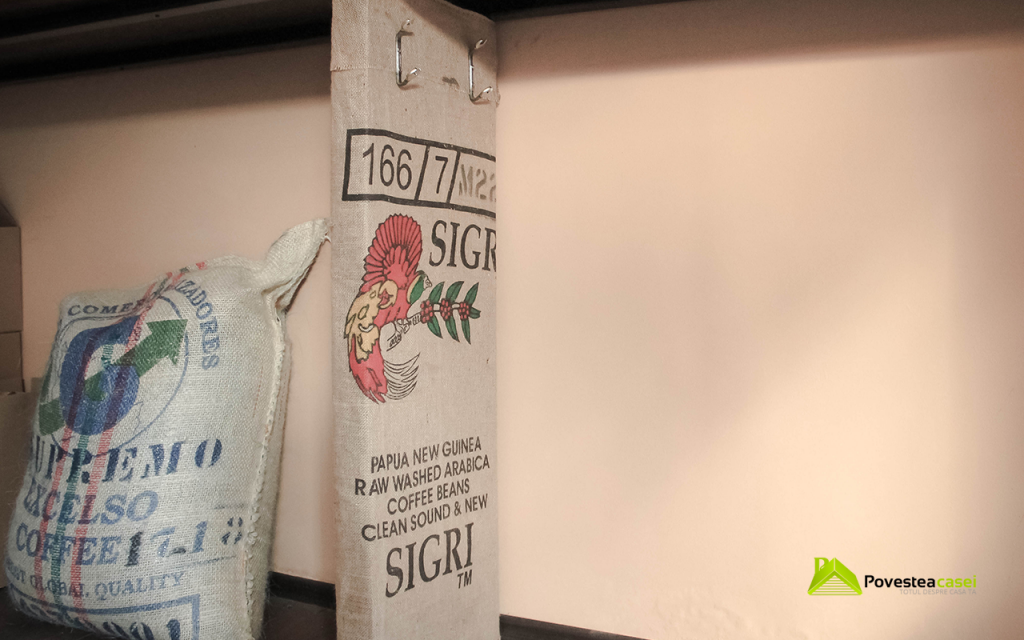 Detaliile interesante precum mostrele de cafea puse pe fiecare masa, portafiltrele care sunt prezente peste tot, jazzul discret care se aude pe fundal, cuierul handmade confectionat din chei de strans suruburi si imbracat in panza de la sacii de cafea, dau autenticitate locului si fac din intreaga amenajare un loc cu o amprenta proprie.