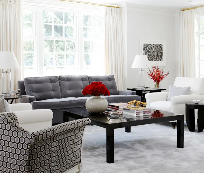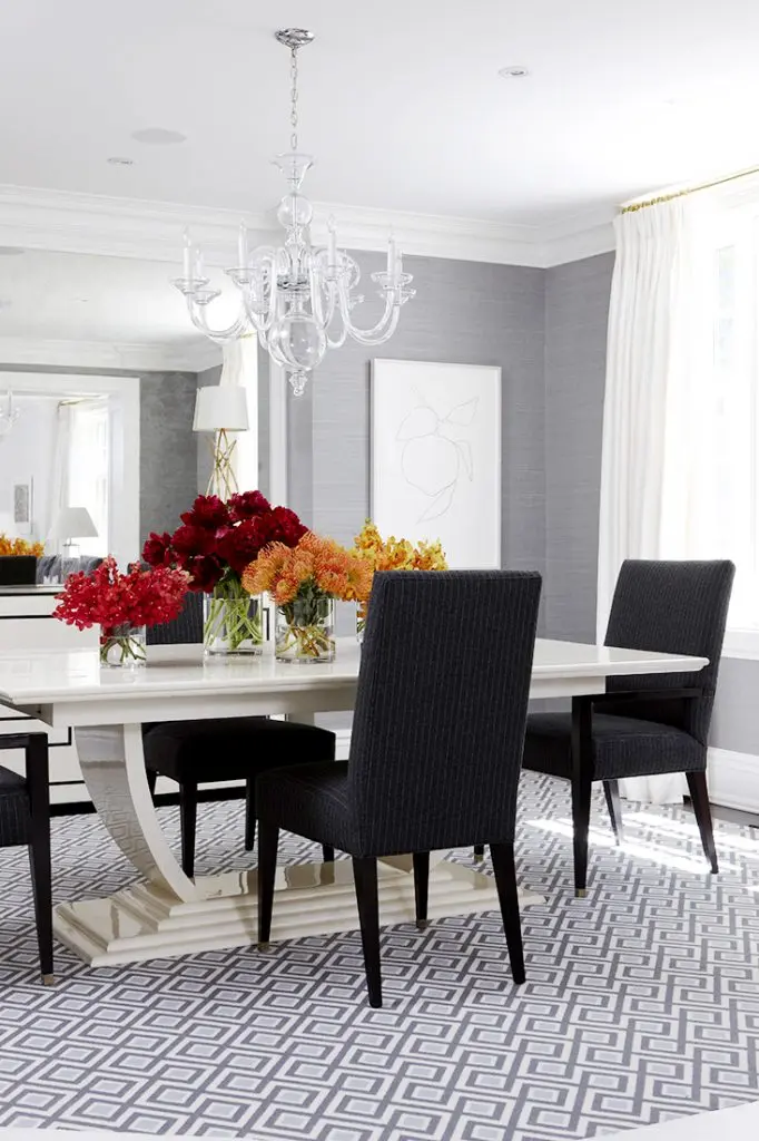 Adaugarea unor modele geometrice fie pentru tapet, piesele de mobila sau covor ofera o oarecare profunzime camerelor, iar unele pete de culoare aduse de flori sau alte accesorii fac din aceasta locuinta una indrazneaza si matura.