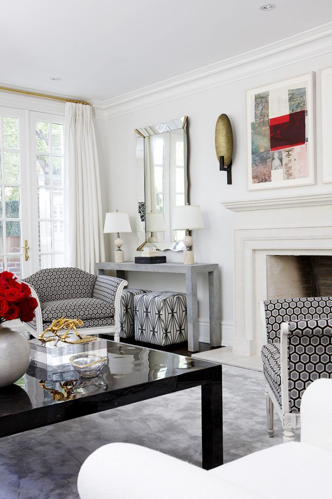Adaugarea unor modele geometrice fie pentru tapet, piesele de mobila sau covor ofera o oarecare profunzime camerelor, iar unele pete de culoare aduse de flori sau alte accesorii fac din aceasta locuinta una indrazneaza si matura.