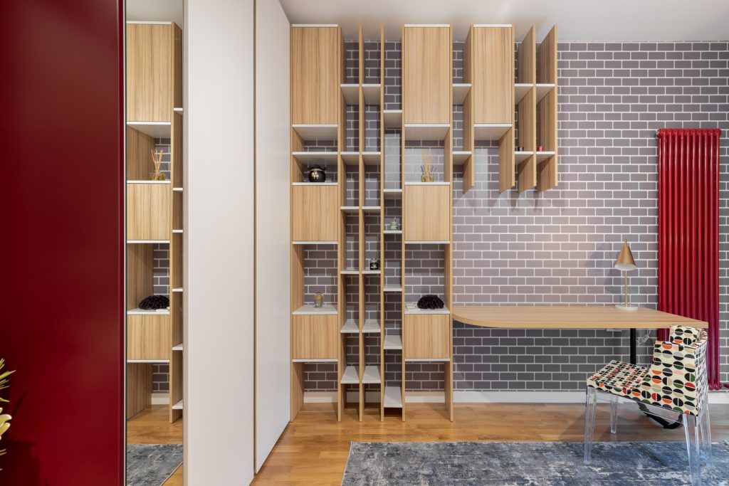 Cu o suprafata utila de 96 de metri patrati (plus terasa de 8 metri patrati cu acces din fiecare camera) apartamentul este locuinta unei familii de antreprenori cu o fetita de 14 ani si un caniche.