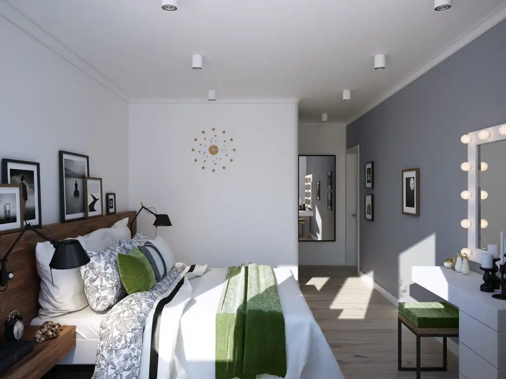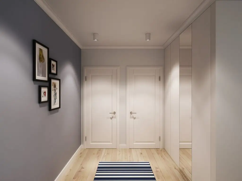 Pentru a preveni mirosurile neplacute din bucatarie, o usa glisanta a fost montata pentru a separa livingul de bucatarie. Holul comunica direct cu livingul, separatia fiind realizata printr-un dulap incorporat in perete.