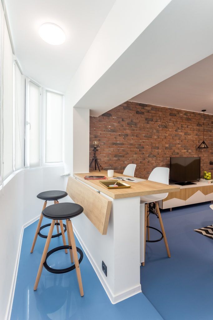 Pentru ca dintr-un spatiu mic a fost nevoita sa obtina doua camere, Irina a optat pentru o pardoseala autonivelanta, fara profile de trecere sau intreruperi intre camere, obtinand o continuitate vizuala binevenita pentru acest proiect.