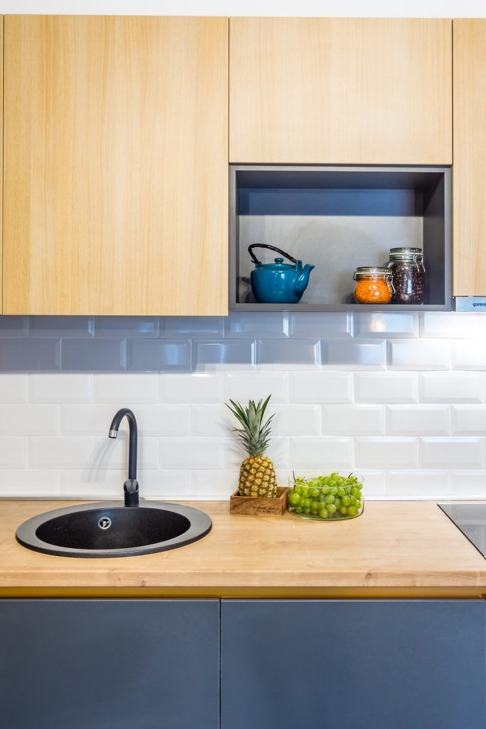Irina a propus o amenajare moderna, functionala, cu influente scandinave, usor de intretinut, cu elemente din lemn, mobilier alb si luminozitate sporita.