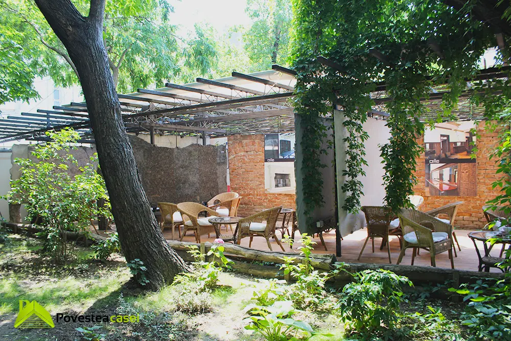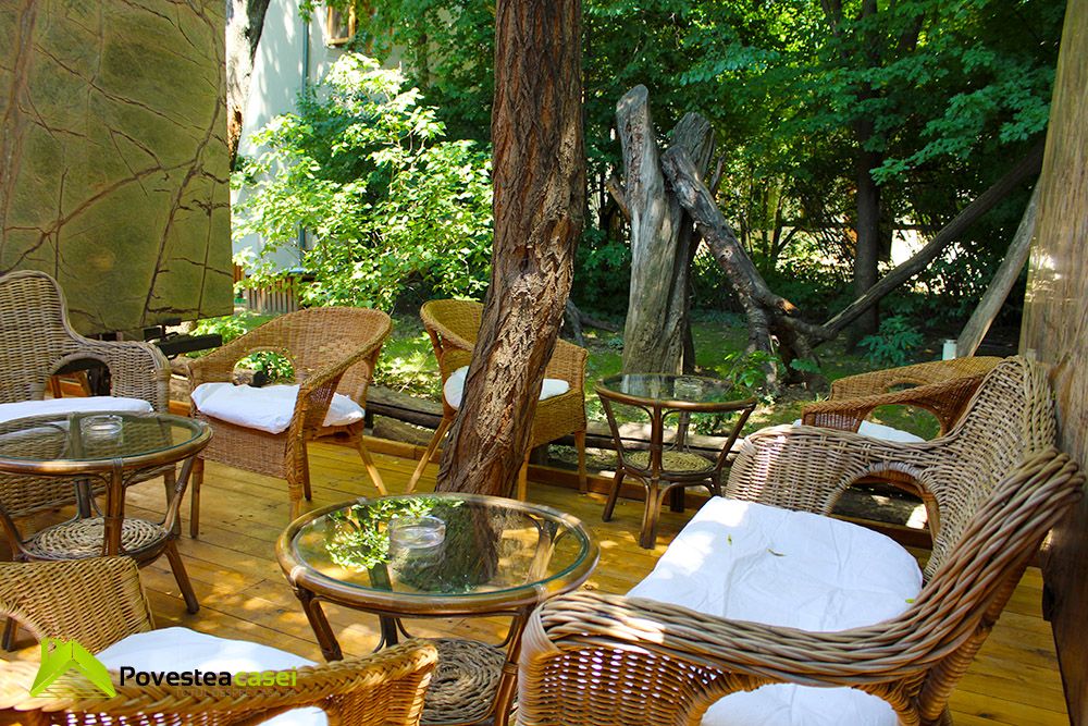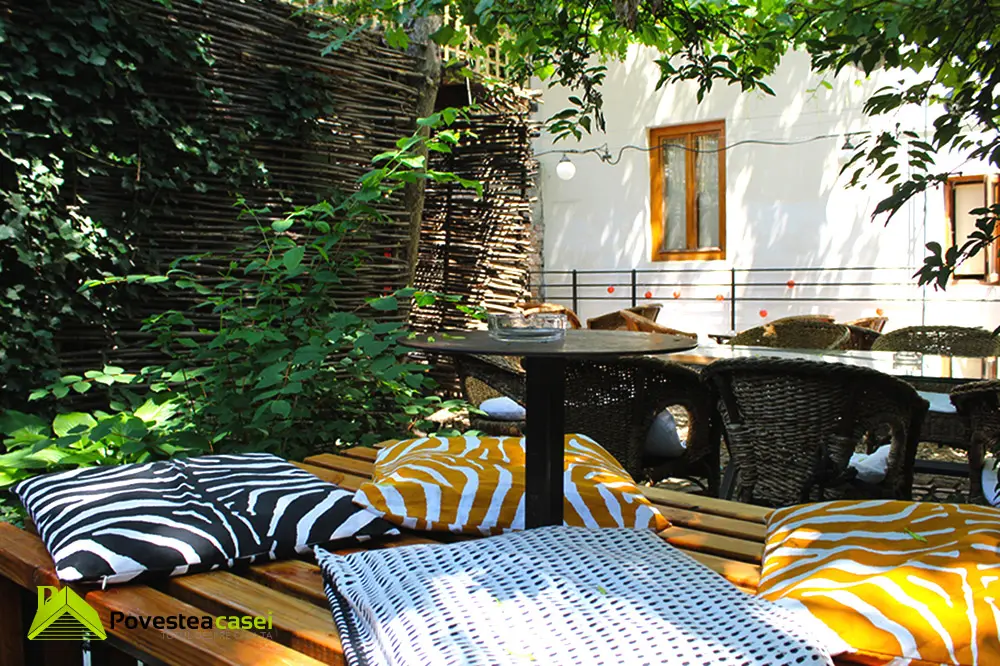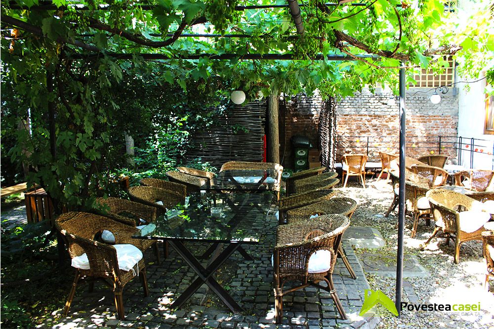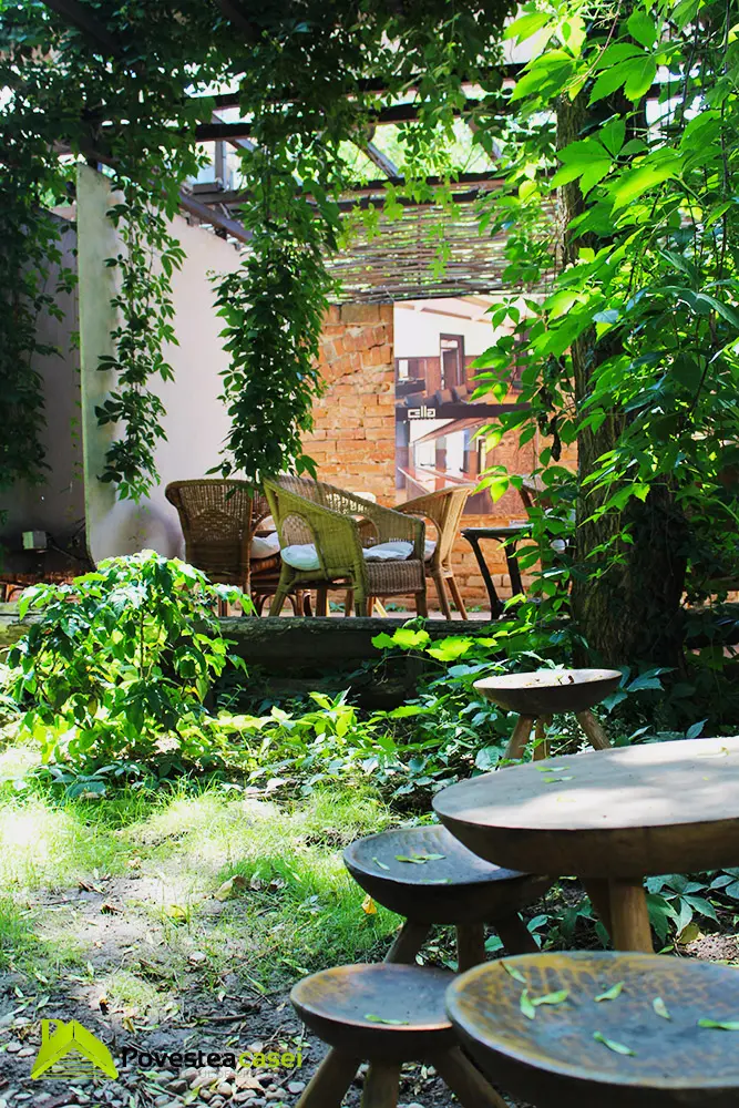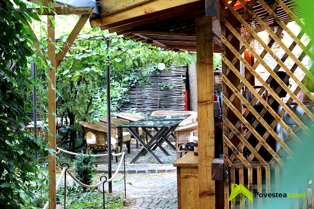 La fel si bolta cotropita de vita de vie, din coltul gradinii, sub care se afla o masa lunga imprejurul careia sunt puse scaune de rachita, zona care ne transpune parca in curtea bunicilor de la tara.