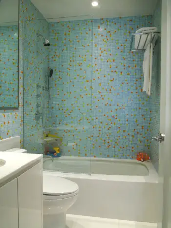 Cu diverse forme geometrice sau sofisticate, modele neregulate, in culori vibrante sau doar in alb si negru, sub forma de solzi, asortate cu alte elemente din baie (unele accesorii chiar din lemn), aceste decoratiuni ale peretilor fac din baie locul din care nu-ti mai vine sa iesi.