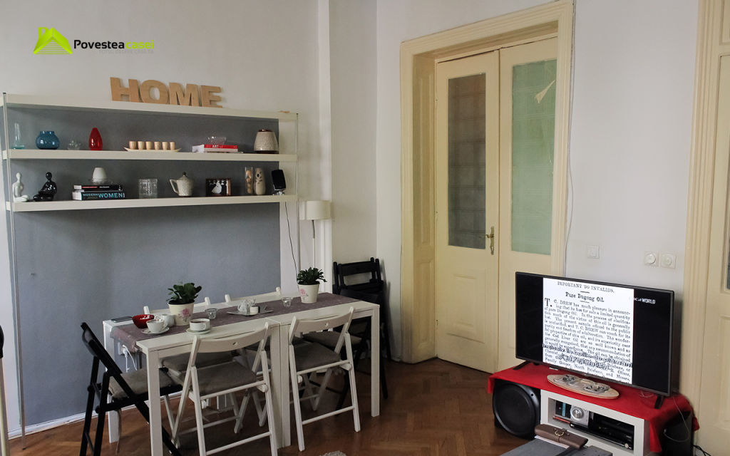 Materialele sunt o combinatie intre vintage, hand-made, IKEA, materiale reciclate, tuse minimaliste, punand in valoare aceasta cladire construita, cel mai probabil, pe la inceputul anilor 1900, cand s-a construit intreg cartierul Cotroceni.
