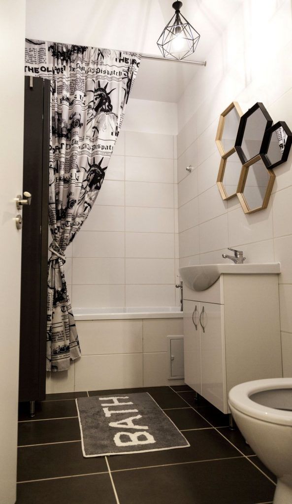 Hexagonul este forma cea mai iubita in aceasta amenajare: oglinzile baii, rafturile din living, corpurile de iluminat, toate se contureaza astfel, intarind ideea de natura in relief.