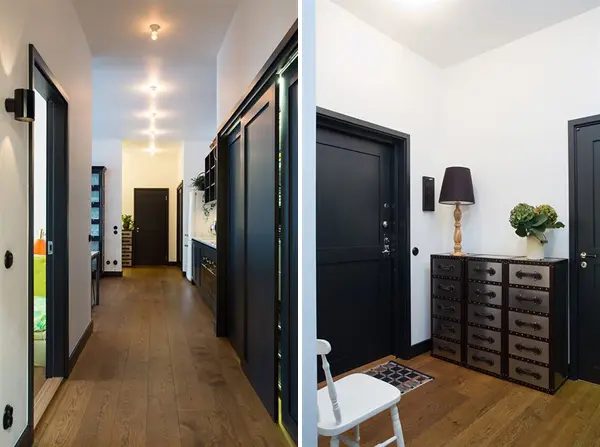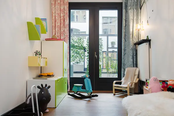 Tipic pentru stilul scandinav sunt peretii albi, podeaua din lemn masiv de o culoare foarte placuta, tocurile de culoare inchisa care contrasteaza intr-un mod foarte placut cu albul peretilor.