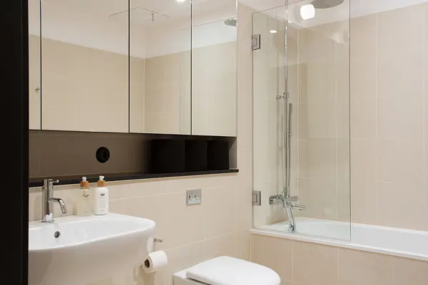 Baia este decorata in totalitate in alb, ceea ce este de inteles, intrucat aspectul igienic al acestei camere trebuie pus pe primul plan.