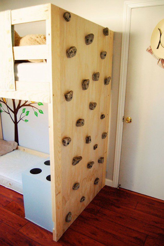 In principiu, va sunt necesare cateva tablii din lemn, asta daca doriti sa extindeti zona de catarat si pe o parte din tavan. Mai trebuie roci de plastic de care cel mic sa se poata agata. Montati-le din loc in loc astfel incat sa fie la indemana. Noi va sugeram sa cumparati roci colorate si in forme variate pentru a stimula creativitatea si a-i da energie pozitiva celui mic.