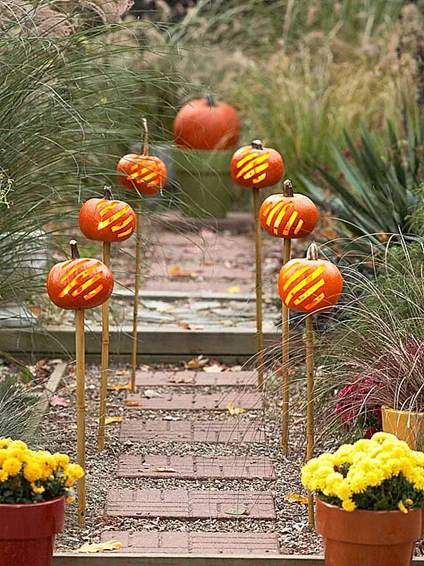 Va place dovleacul? Si noua. Alegeti cativa dovleci si aranjati-i prin curte, in gradina sau pe marginea aleii. Fie ca ii lasati intregi sau ii pregatiti pentru seara de la Halloween, copiii vor indragi decorul cu dovleci. Sfatul nostru este sa ii pastrati intregi pana atunci pentru a nu se pali.