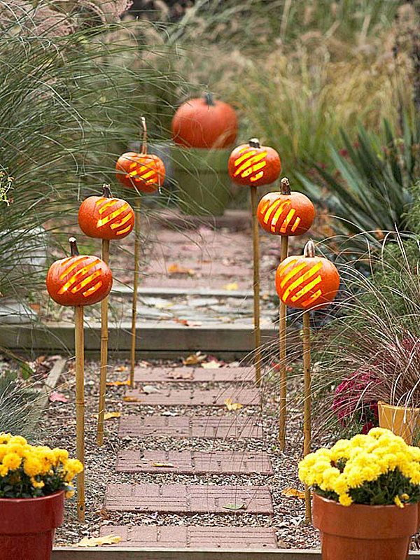 Va place dovleacul? Si noua. Alegeti cativa dovleci si aranjati-i prin curte, in gradina sau pe marginea aleii. Fie ca ii lasati intregi sau ii pregatiti pentru seara de la Halloween, copiii vor indragi decorul cu dovleci. Sfatul nostru este sa ii pastrati intregi pana atunci pentru a nu se pali.