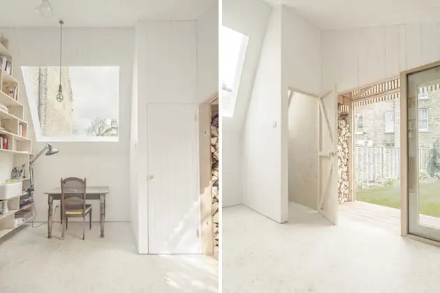 Acest spatiu a fost creat pentru scriitor de carti pentru copii, in East Hackney, Londra, de catre echipa de arhitecti de la WSD Architecture, dorind sa indeplineasca ca la carte nevoile clientului lor, care si-a dorit un spatiu linistit, unde sa poata scrie povesti pentru copii in liniste, fara a fi deranjat de zgomot sau de persoane.