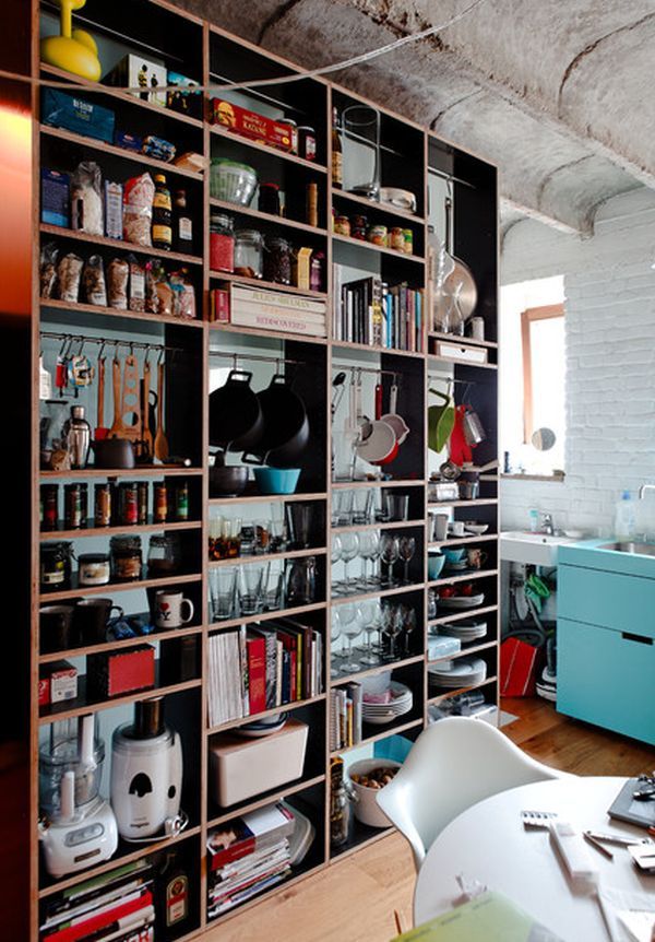 Amenajati o piesa de mobilier, un dulap cu rafturi deschise in care paharele, farfuriile si canile sa devina obiecte de decor