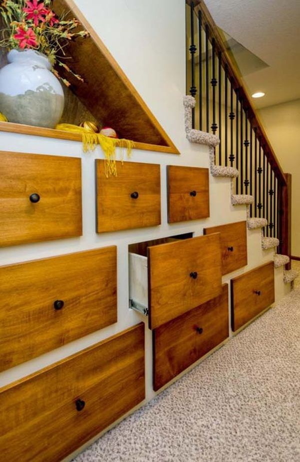 Puteti stoca direct in spatiul scarilor, prin amenajarea de sertare in fiecare treapta sau in corpul de sustinere al scarilor in functie de cat spatiu aveti la dispozitie.